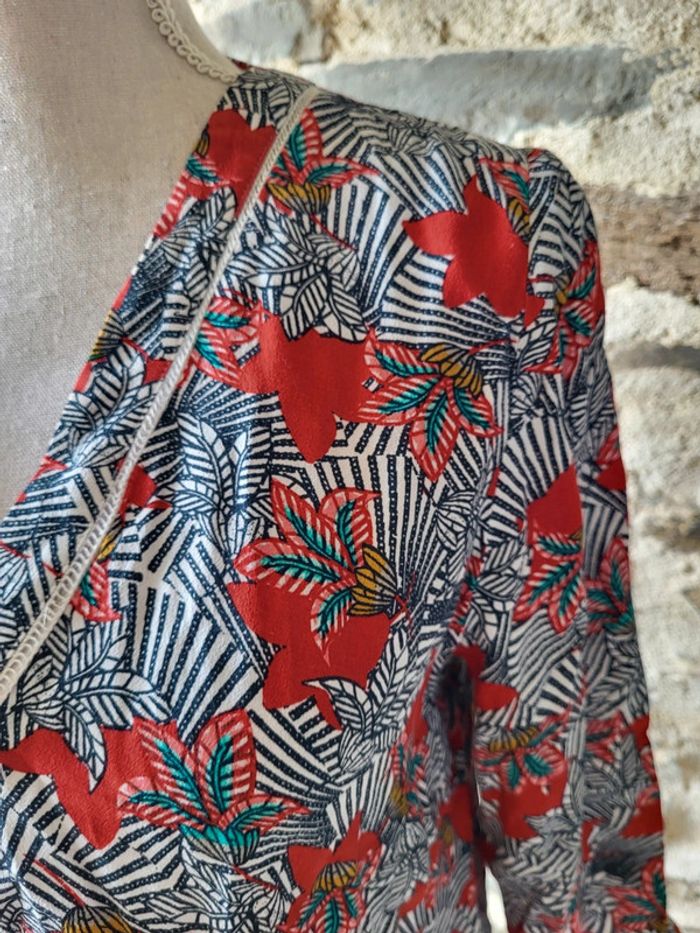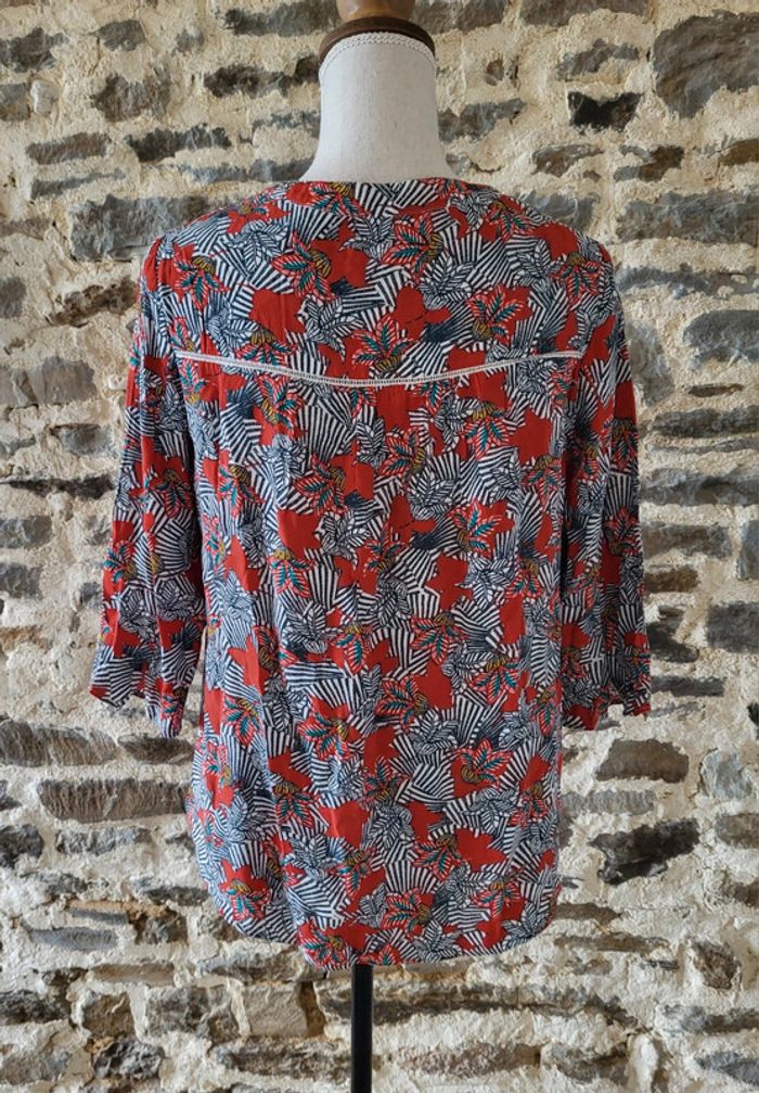 Blouse manches 3/4 fleurie rouge noir et blanc Caroll Taille 40 - photo numéro 9