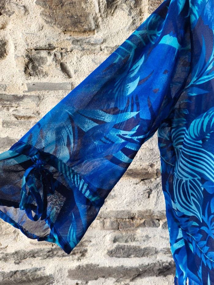 Chemise légère bleu électrique et turquoise motif feuilles Taille46 Blancheporte - photo numéro 4