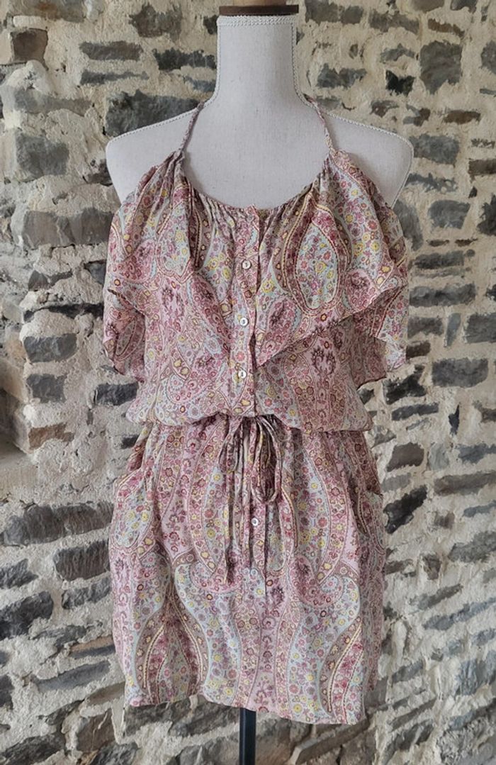 Robe imprimé cachemire rose jaune dos nu Zara Taille M ou 38 - photo numéro 1