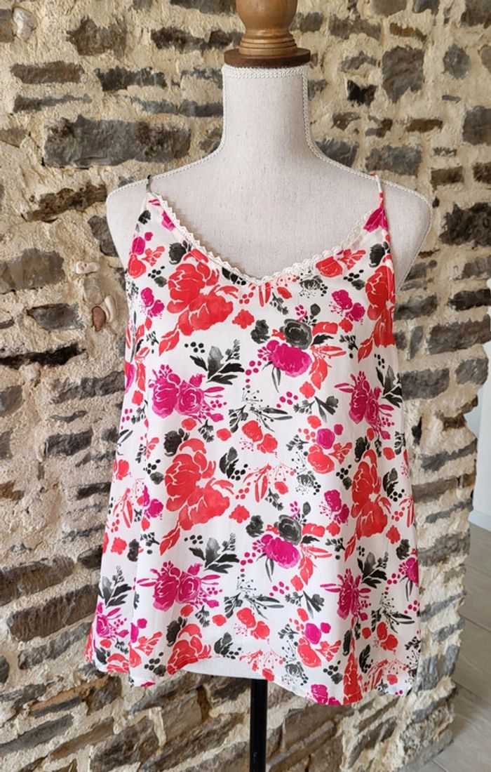 Débardeur fleuri rouge rose et blanc Tissaia Taille 42 - photo numéro 1