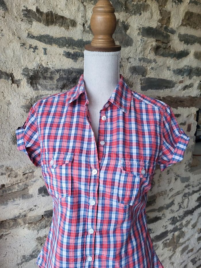 Chemisier manches courtes à carreaux rouge blanc bleu H&M Taille 36