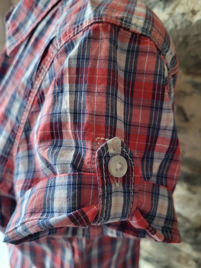Très joli chemisier manches courtes à carreaux rouge blanc bleu H&M Taille 36 (etiquetté 38 mais taille petit, voir photos des mesures à plat) 100% coton Carure 38cm Aisselles 46cm Longueur 63cm En excellent état, comme neuf Très léger et agréable à porter Idéal pour la mi saison ou l'été #matka27_taille36 #taille36 #chemisier #hm #carreaux #bleu #blanc #rouge #manchescourtes