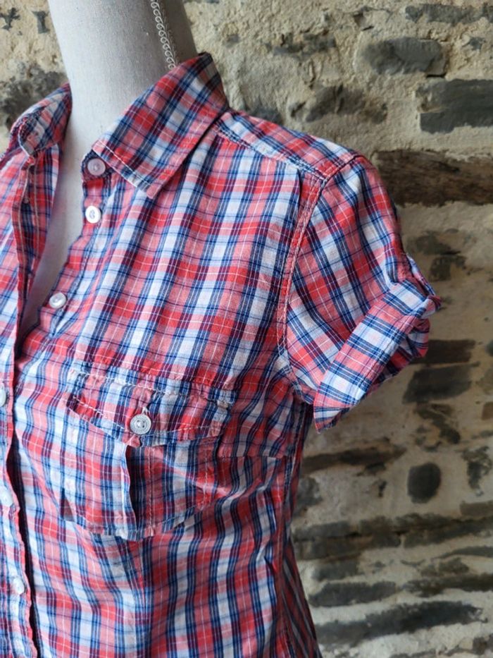 Chemisier manches courtes à carreaux rouge blanc bleu H&M Taille 36 - photo numéro 11