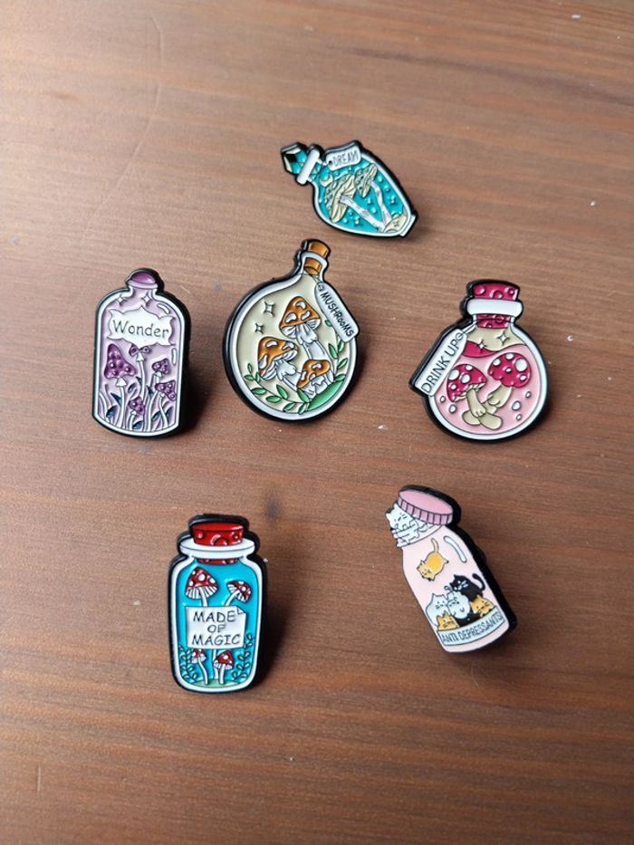 Pins fioles, bouteilles fantaisies, féeriques, enchantées