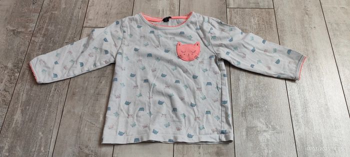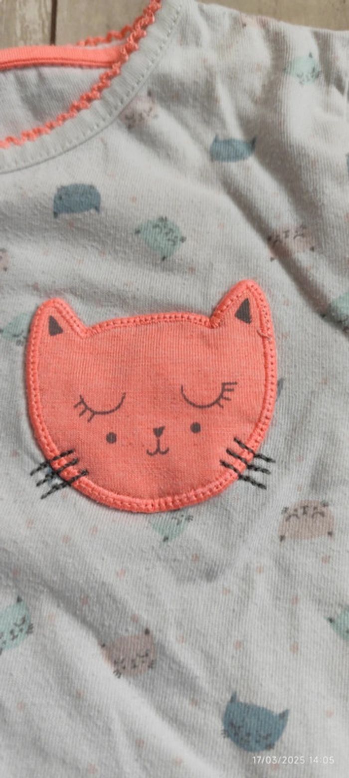 Je vends ce pyjama deux pièces de couleur blanche avec des petites têtes de chat, de la marque Kiabi et un taille 24 mois. #Estelle2150_enfant_24mois
