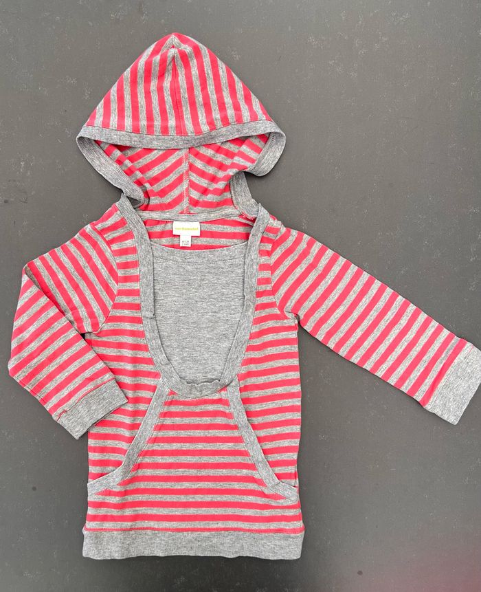 Robe pull style Sweat à capuche de couleur gris rayé de rose. En parfait état, aucune tâche ni trou. En coton, viscose et elasthanne. Taille 2 ans, marque Vertbaudet. Envoi rapide et soigné, réduction automatique dès 2 articles sélectionnés. Mes autres ventes ici: #24moisfilleugolola #24moisfille #2ansfille #robepull2ans #robesweat2ans