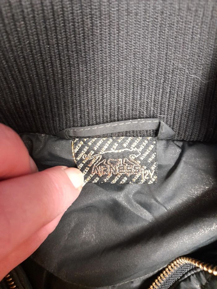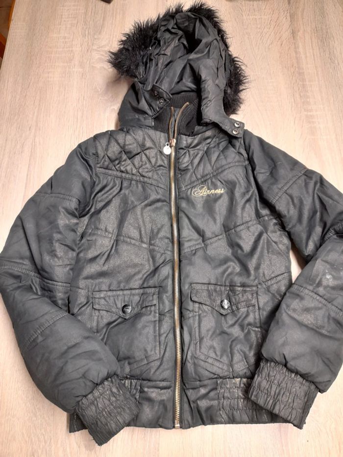 Doudoune en bon état. Petite tâche sur la manche qui se voie peu Noir avec reflet doré