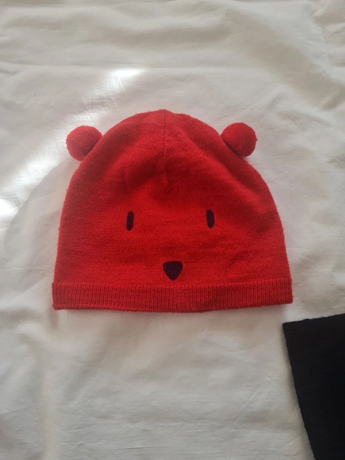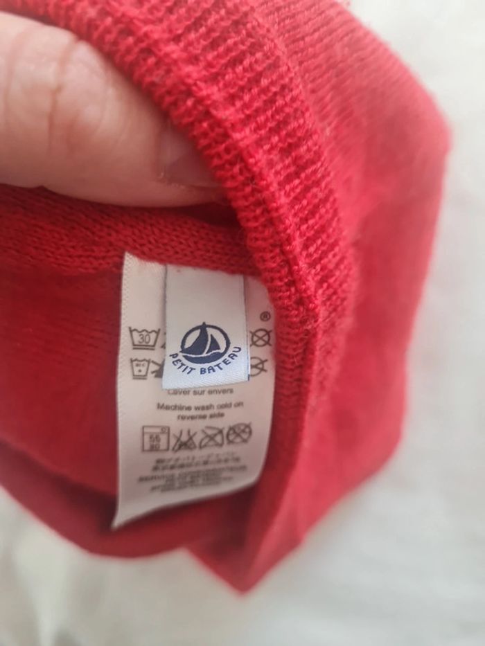 Bonnet rouge avec 2 pompons Taille 49/51 cm Marque Petit Bateau Très bon état