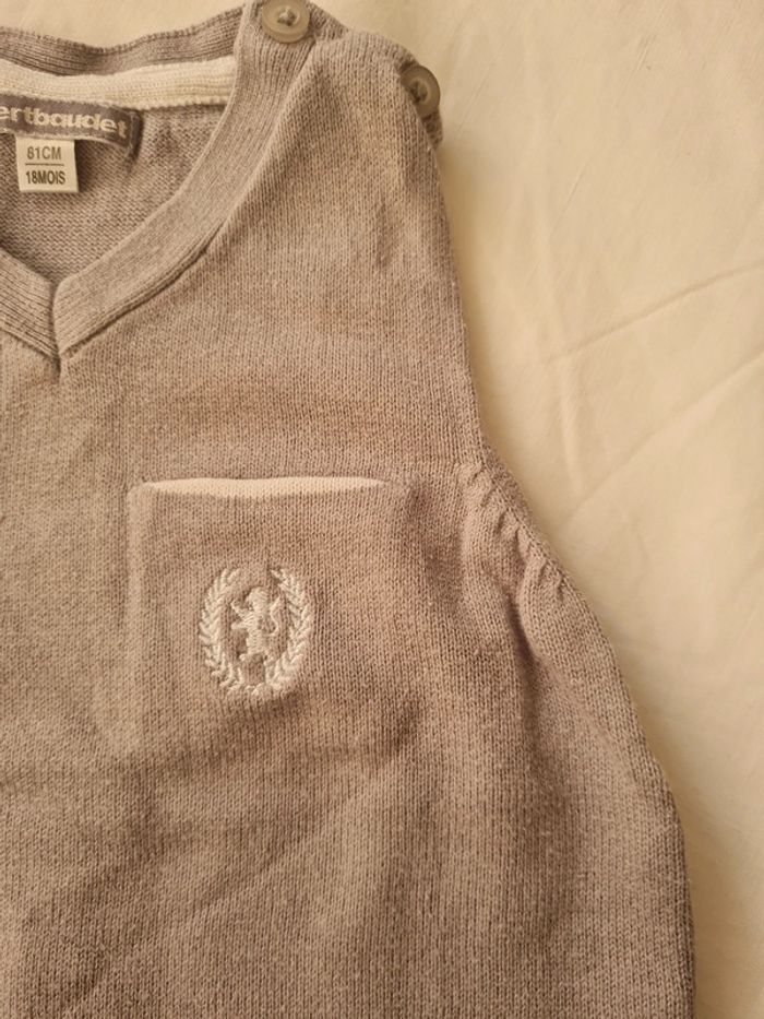 Pull sans manche gris clair Taille 18 mois Marque Verbaudet Très bon état