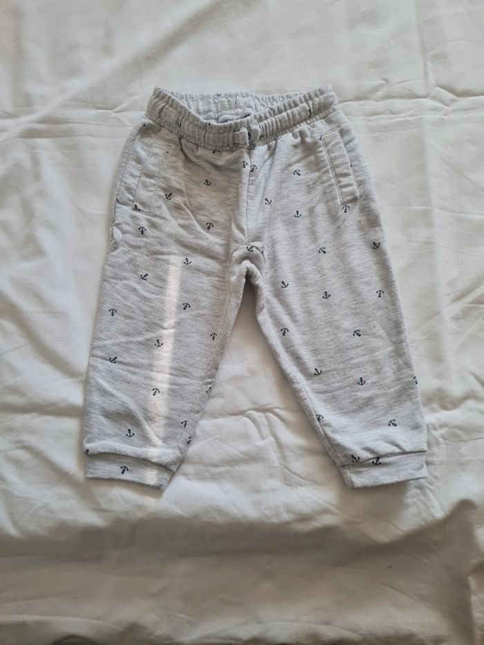 Pantalon de jogging gris clair chiné imprimé encre. Taille 18 mois Marque Tex Très bon état