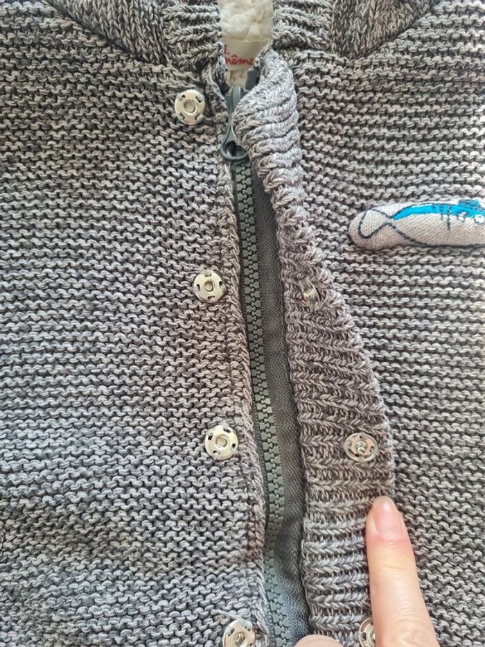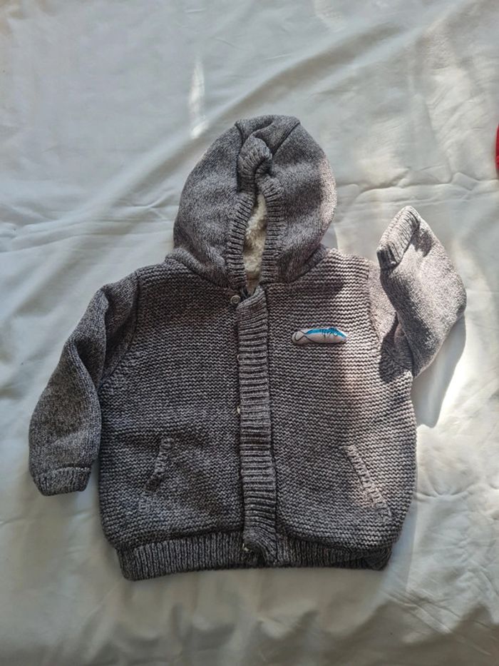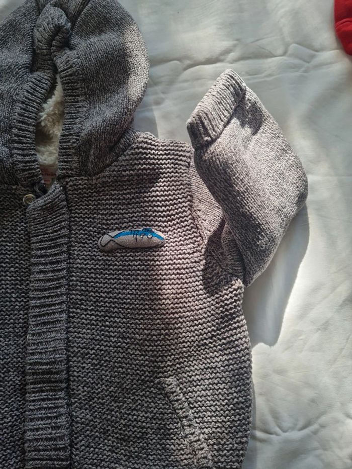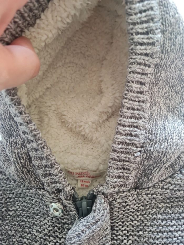 Veste grise zippée plus pression intérieur doublée polaire avec capuche Taille 18 mois Marque DPAM Très bon état