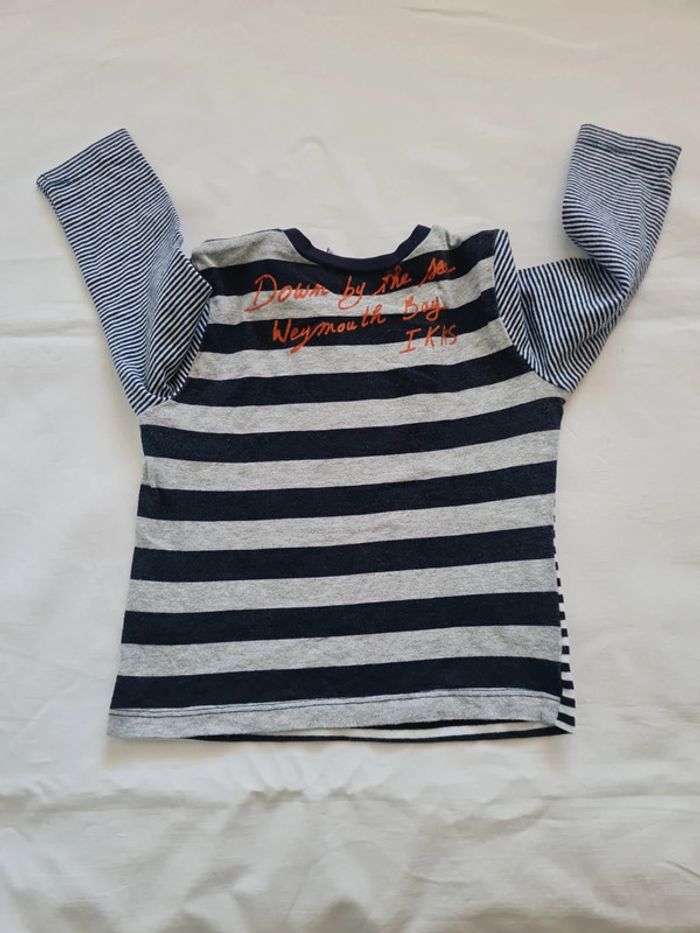T-shirt manches longues gris et bleu marine Taille 12 mois Marque IKKS Très bon état