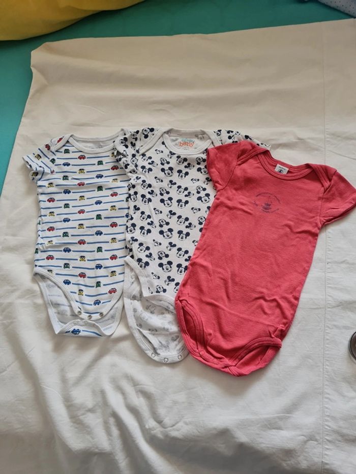 Lot de 3 bodies manches courtes Taille 18 mois Marque : le rouge Petit Bateau 🚢, le Mickey Disneu Baby et celui vécu les petites voitures dpam Le rouge en bon état pas de tache mais usé Le Mickey très bon état Le Dpam très bon état ⚠️ une petite tâche à l'entrejambe cf photos