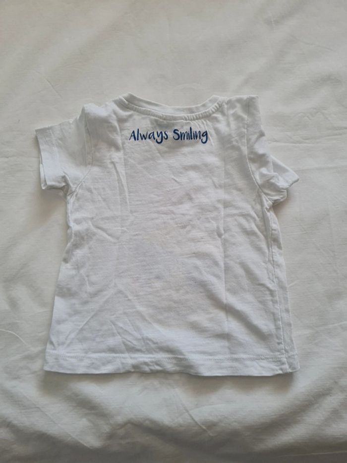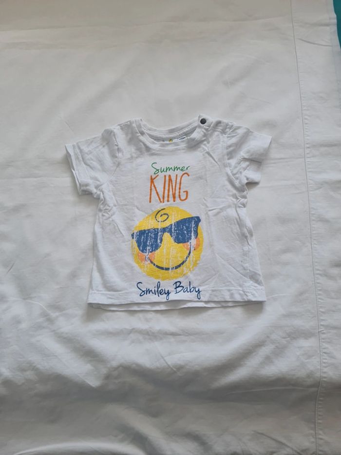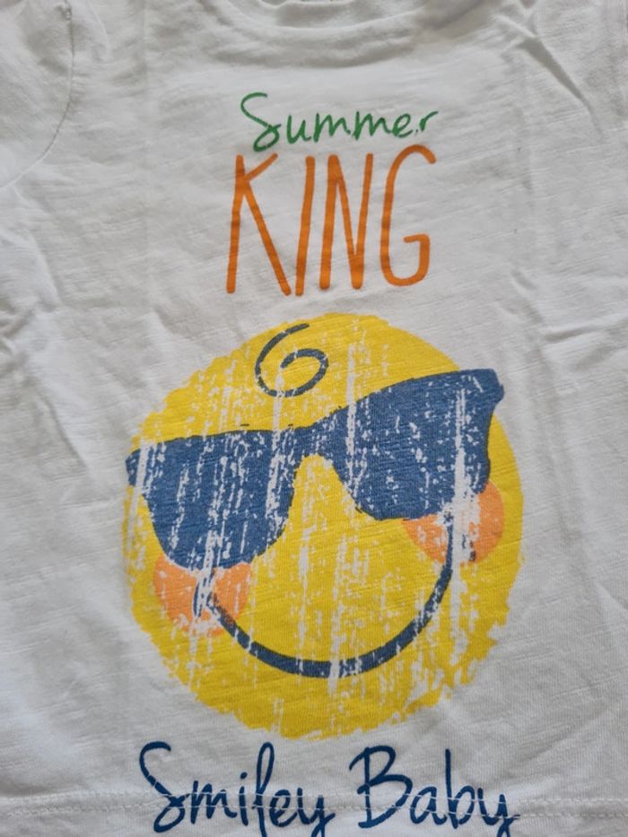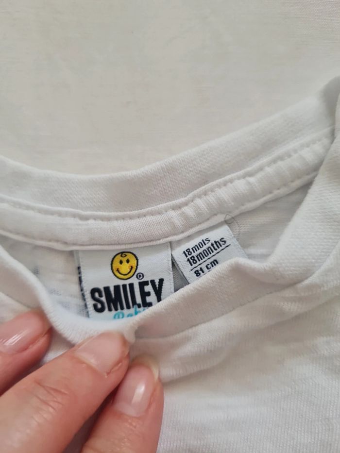 T-shirt manches courtes blanc Taille 18 mois Marque Smiley ☺️ Très bon état ⚠️ décousu à la manche cf photo