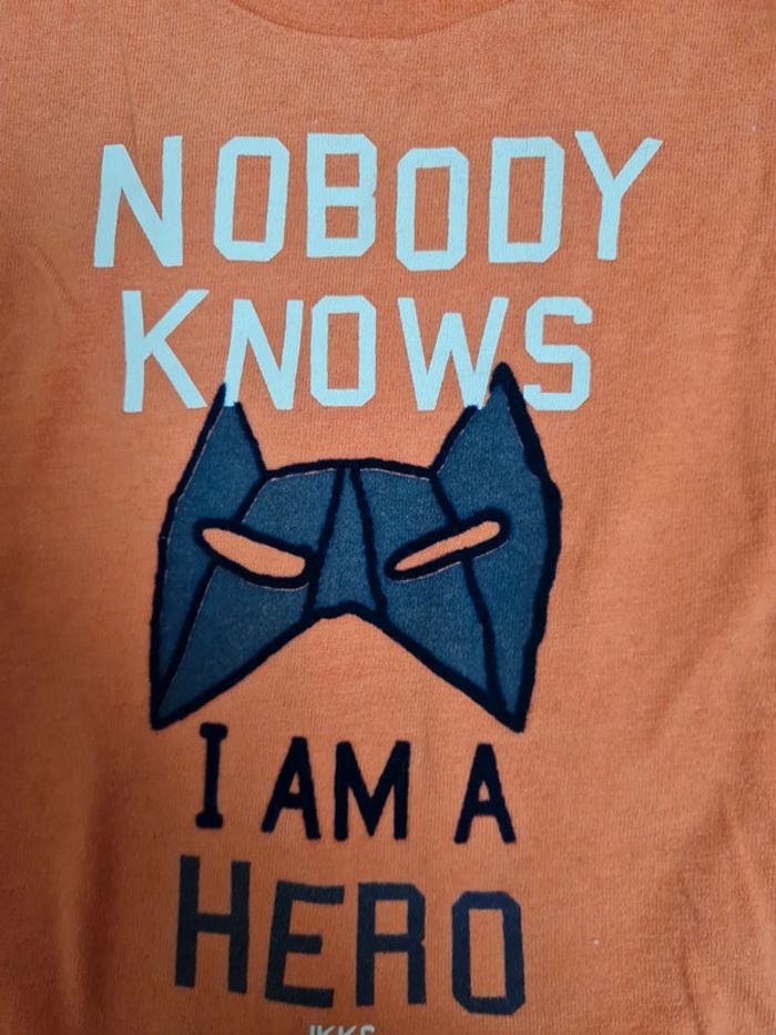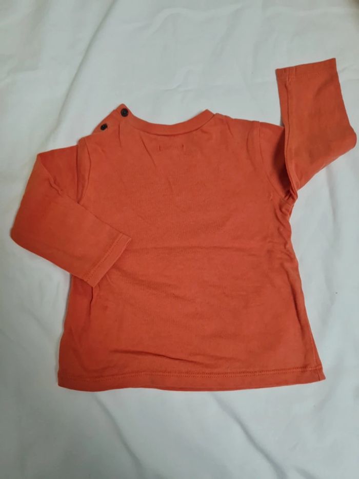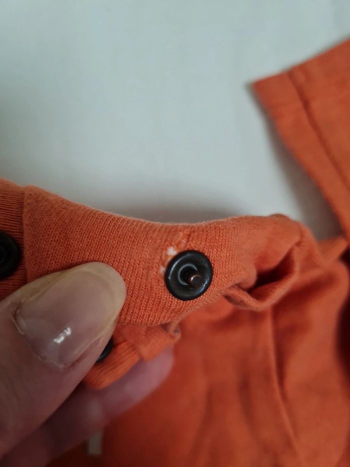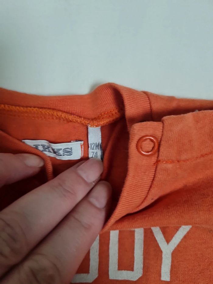 T-shirt manches longues orange Taille 12 mois Marque IKKs Très bon état ⚠️ petit trou près de la pression cf photo