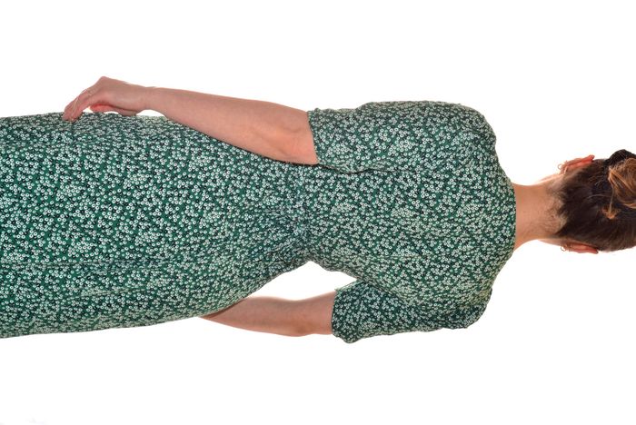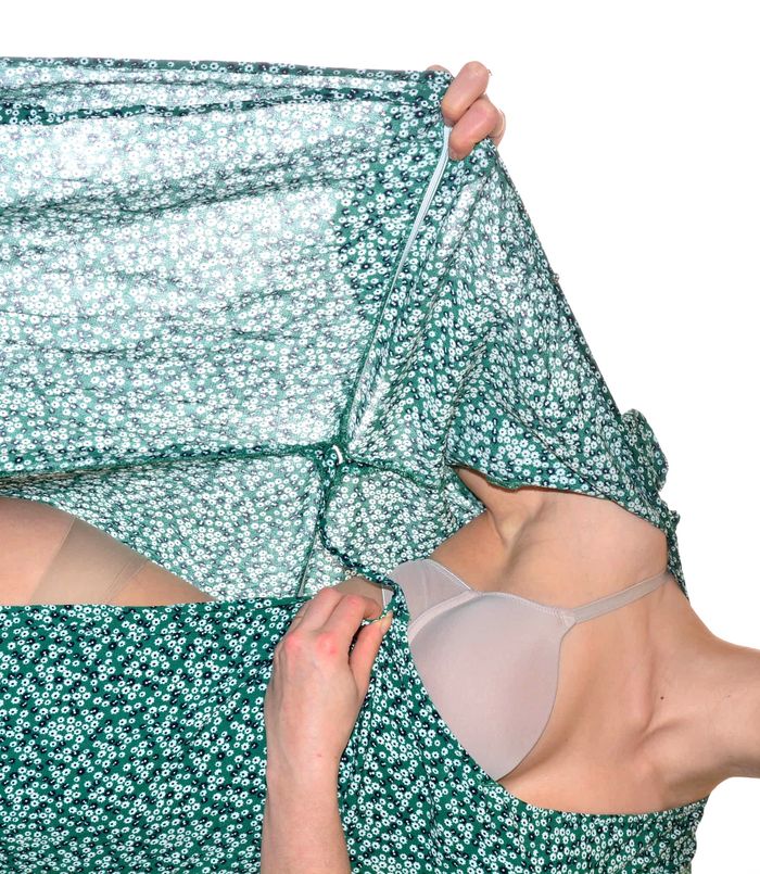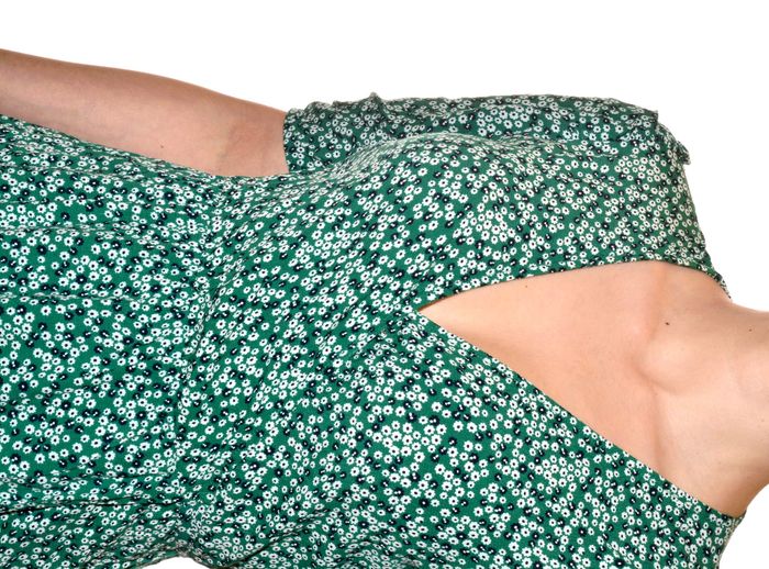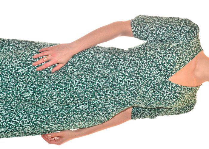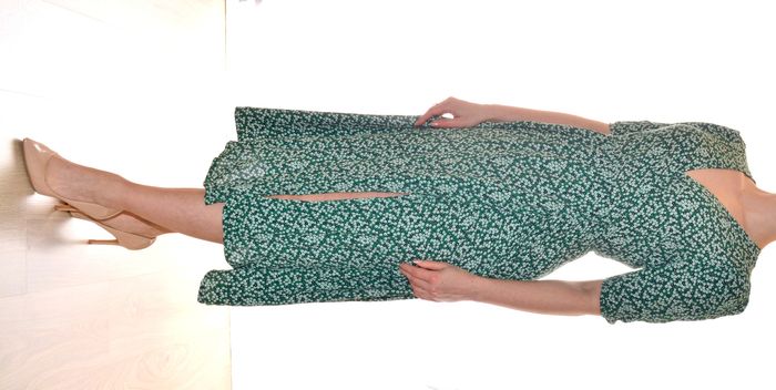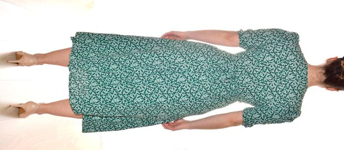 longue robe portefeuille verte motif fleurs blanches col V manches courtes T36 - photo numéro 6