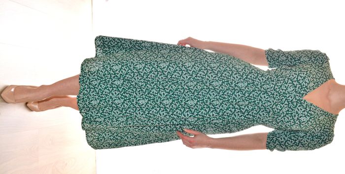 longue robe portefeuille verte motif fleurs blanches col V manches courtes T36 - photo numéro 8