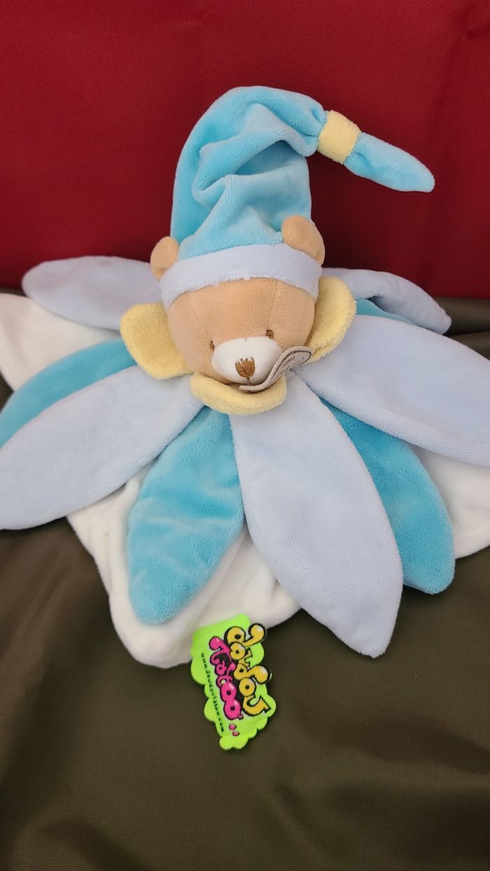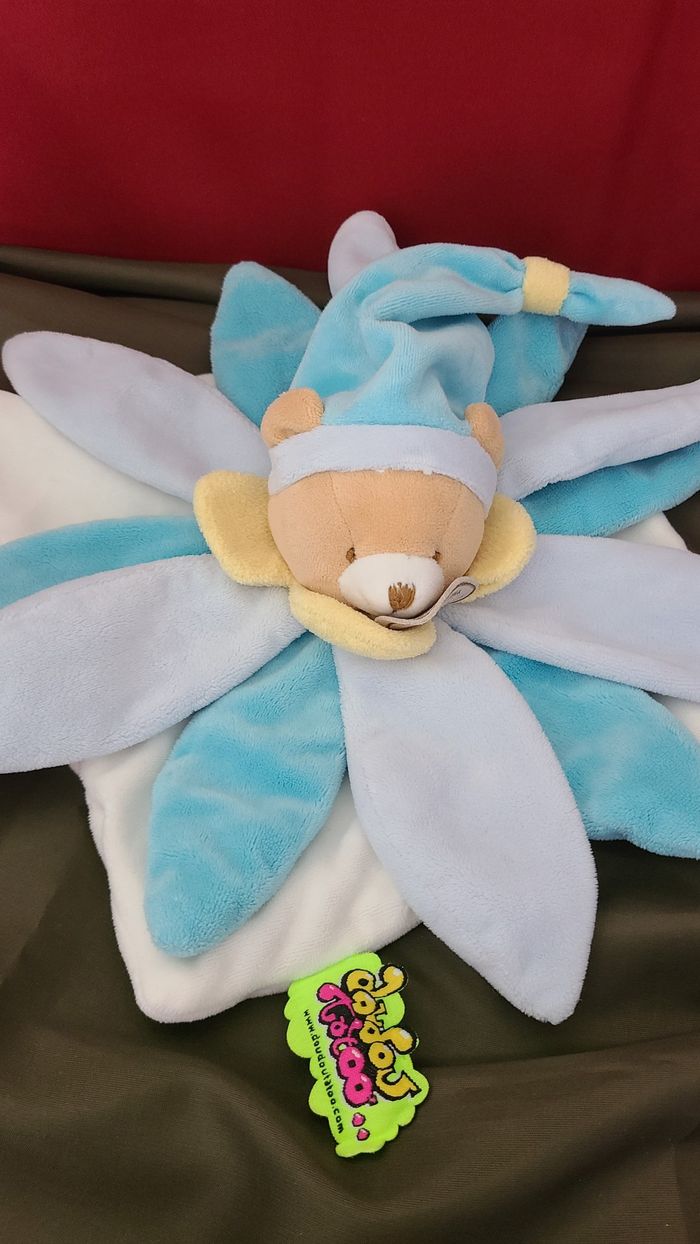 DOUDOU ET COMPAGNIE - Ours bleu pastel blanc pétales Tatoo - photo numéro 1
