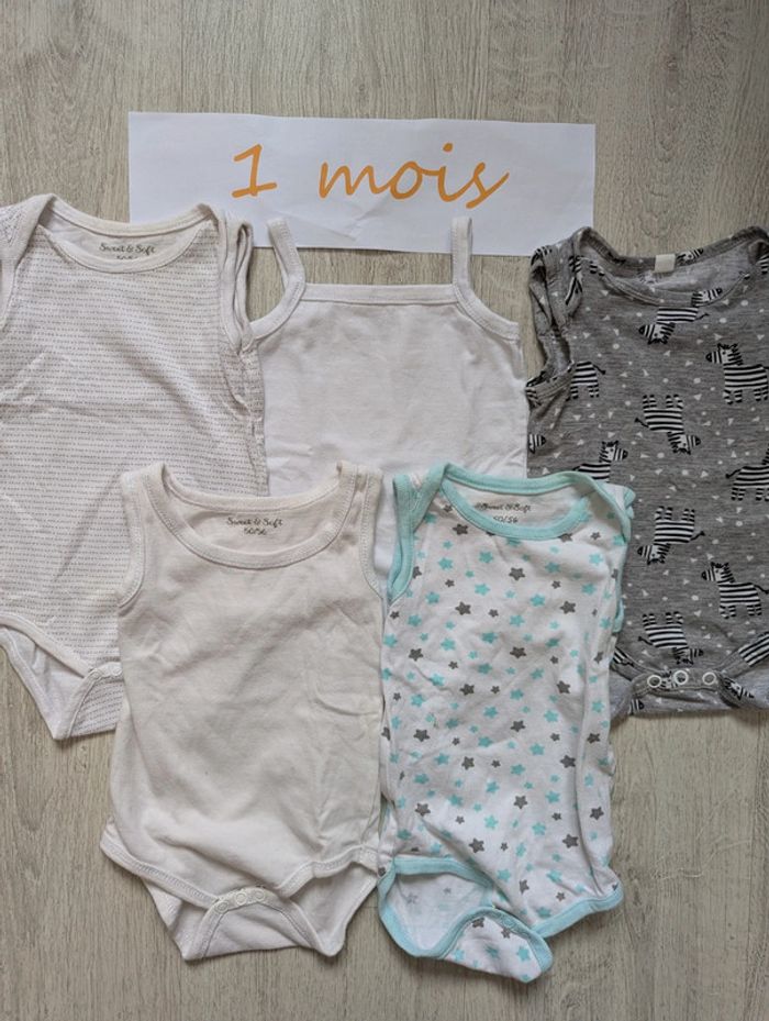 5 bodies sans manche, taille 50/56 cm, portés quelques fois, quelques toutes petites tâches