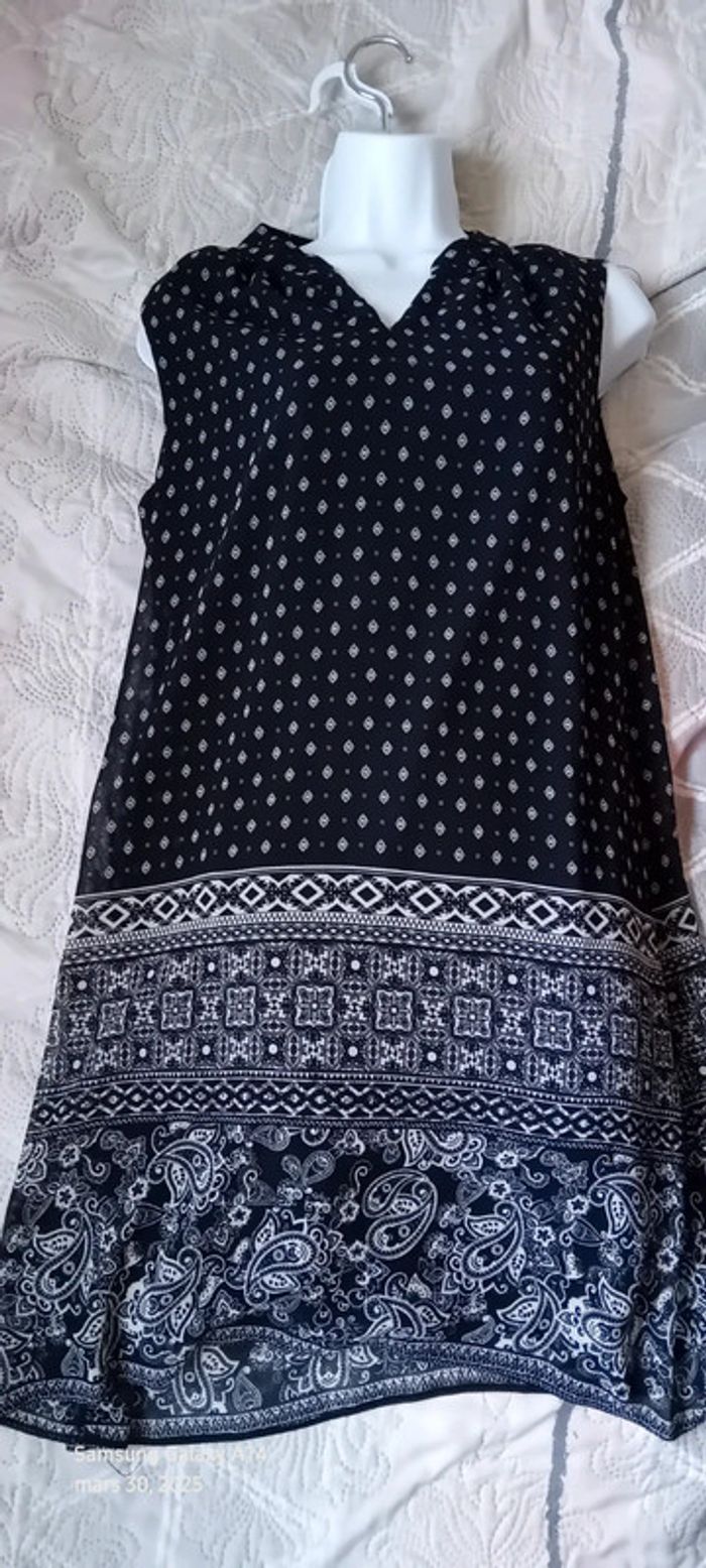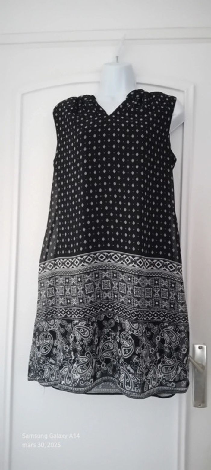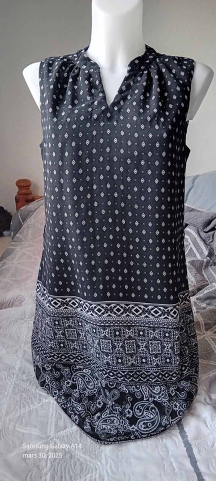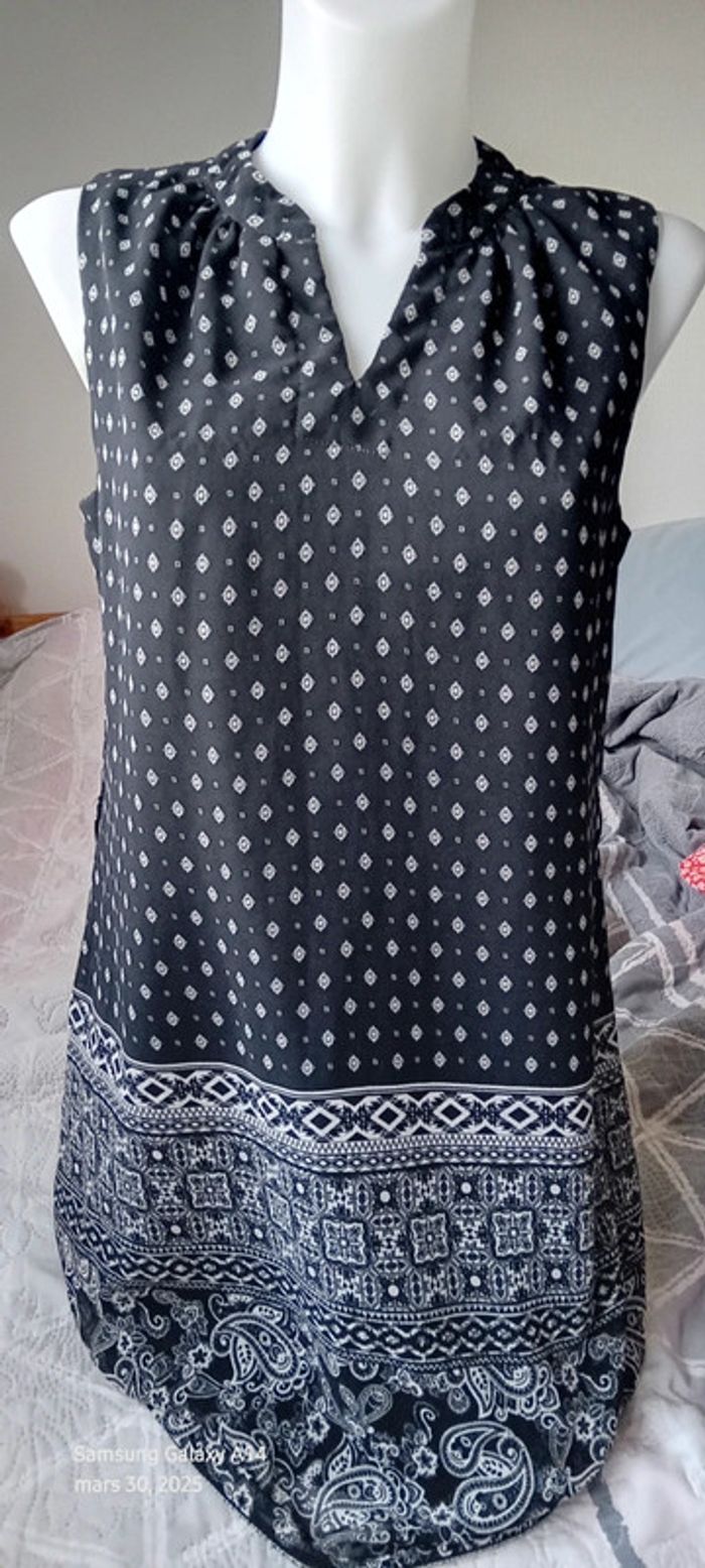 Robe tunique fluide motif ethnique noir et blanc femme 40 atmosphère - photo numéro 1