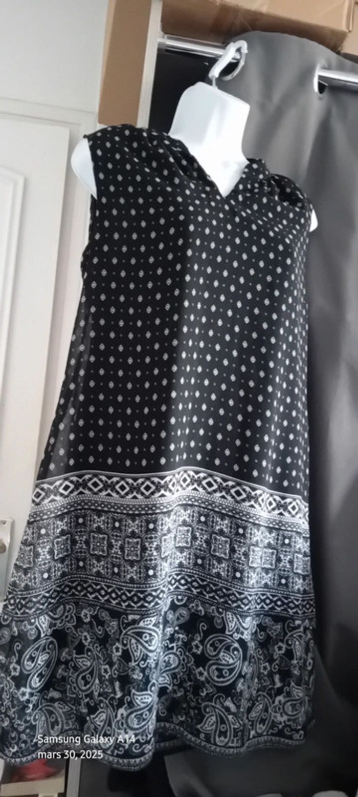 Robe tunique fluide motif ethnique noir et blanc femme 40 atmosphère - photo numéro 19