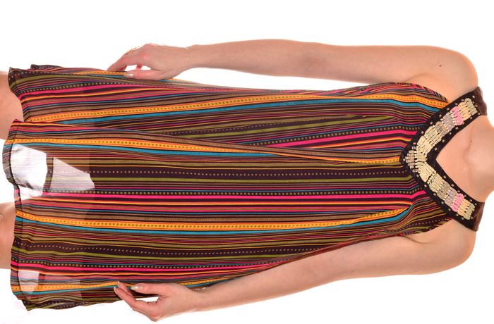 robe ethnique d'été fluide sans manches doublée col V rayée avec ornements T38 - photo numéro 1