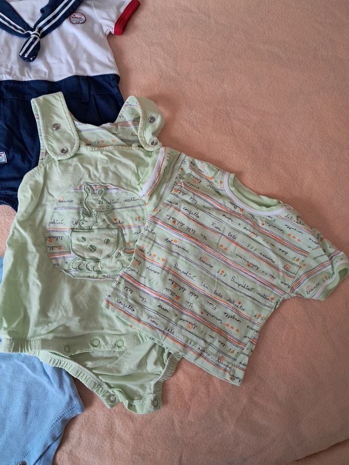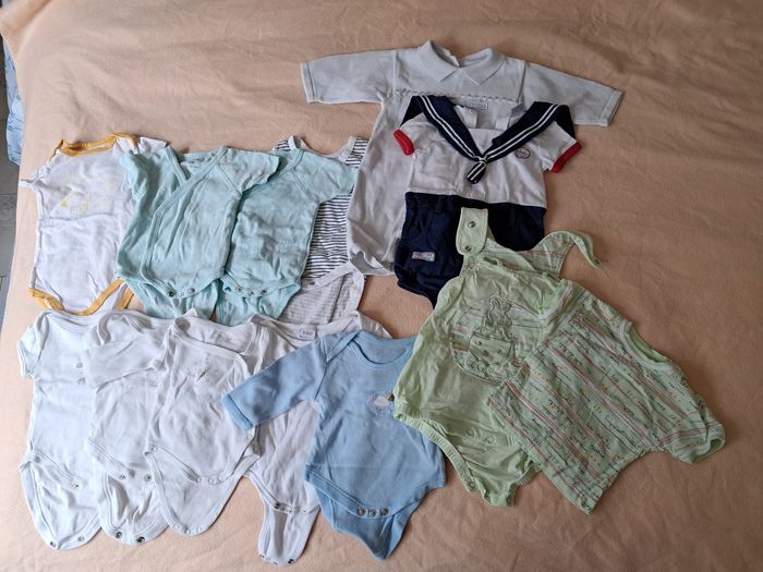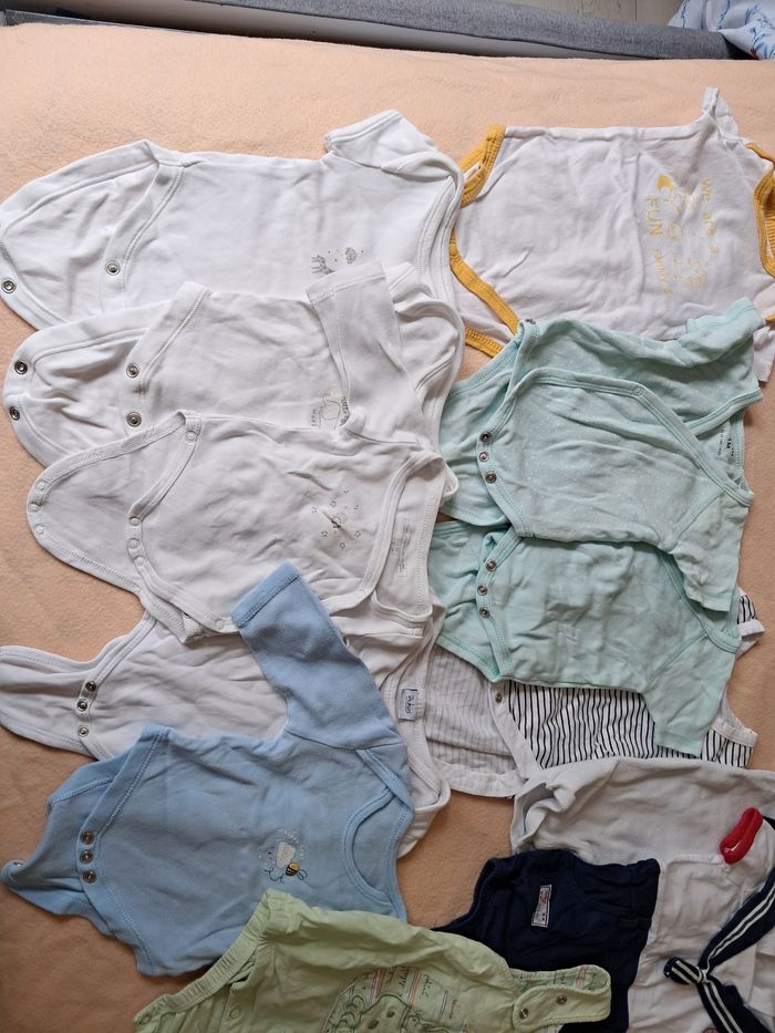 Bon état, taille 50-56 Body manches longues/courtes, 2 ensembles et un grenouillère un coton Couleur plutôt garçon