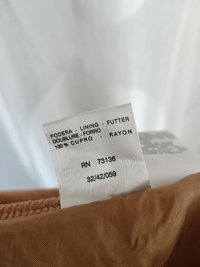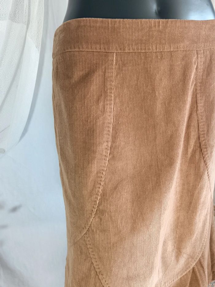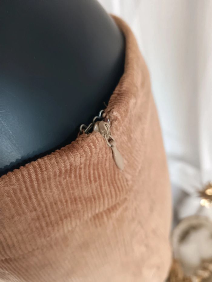 Jupe courte Max Mara. Camel côtelé. Le bas est cousu de façon à former de petites ondulations. Fermeture éclair sur le côté avec crochet de sûreté. Doublé. À porté légèrement en taille haute 40cm Largeur ceinture 64cm de longueur #calm40 #calm42 #jupetaille #workinggirl #jupecotele