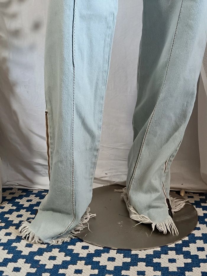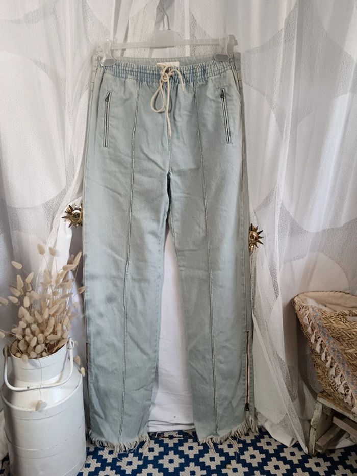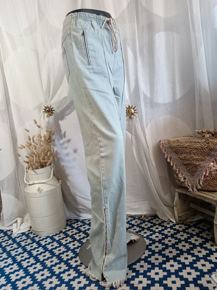 Jean impressionnant de chez Chloé Un mélange réussi de jean et coupe jogging. Effet vieillis et délavé Taille haute et jambes extra longues! À porter avec des talons ou compensées 😍 . Bas de jambes à frange avec fermeture éclair, il se porte long, soit avec basket et le jean traîne style Streetwear chic, soit avec des talons pour un effet élancé. Broderie Chloé à l'arrière. Idéal 36/38 Modèle beju Étiquette composition coupé 40cm Largeur ceinture (lacet sur tout l'avant de la ceinture) 31cm longueur entre-jambe jusqu'au haut 91cm longueur entre-jambe jusqu'au bas #calm36 #calm38 #jeanlong #jeanchloe #streetwearchic #hautecouture
