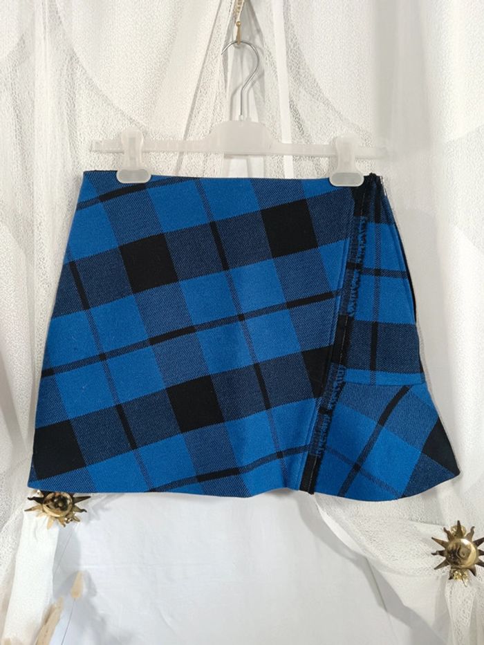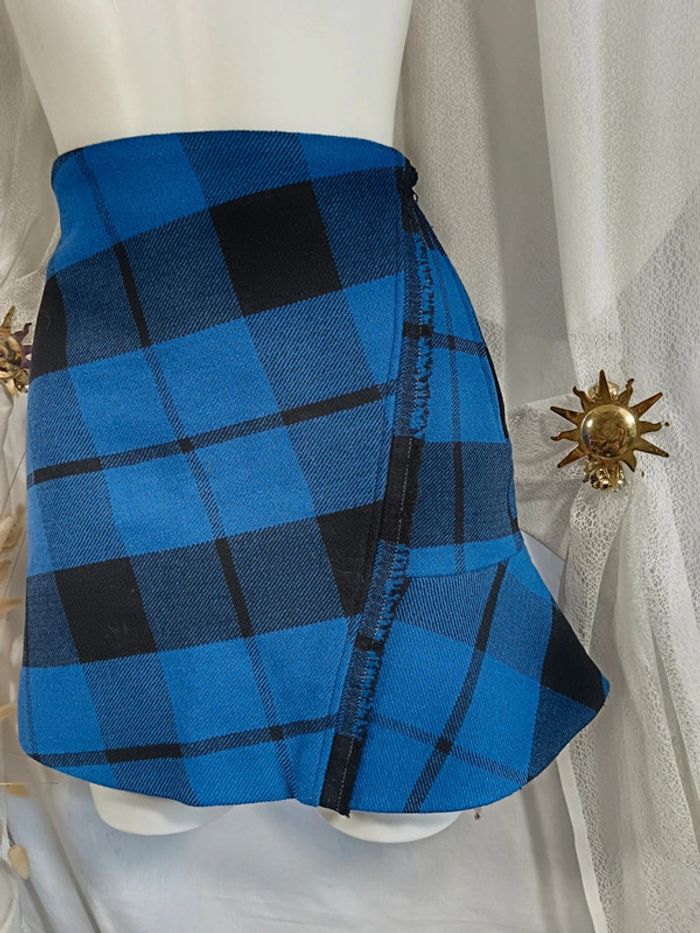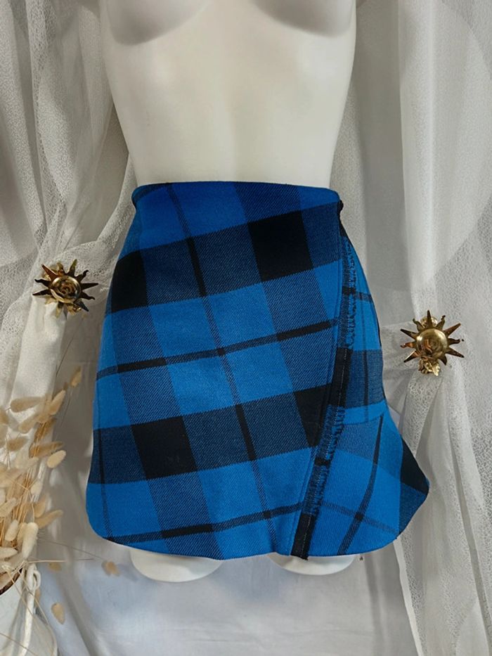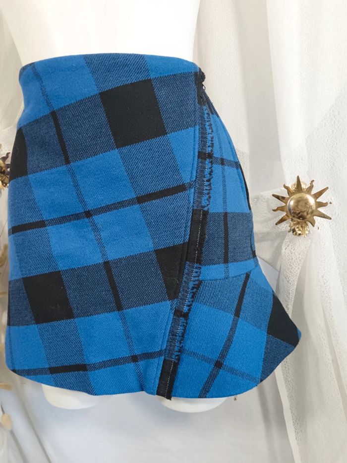 Mini jupe tartan Sandro bleu et noir En excellent état Fermeture éclair sur le côté Effet léger volant sur la gauche #calm38 #calm40 #minijupetartan