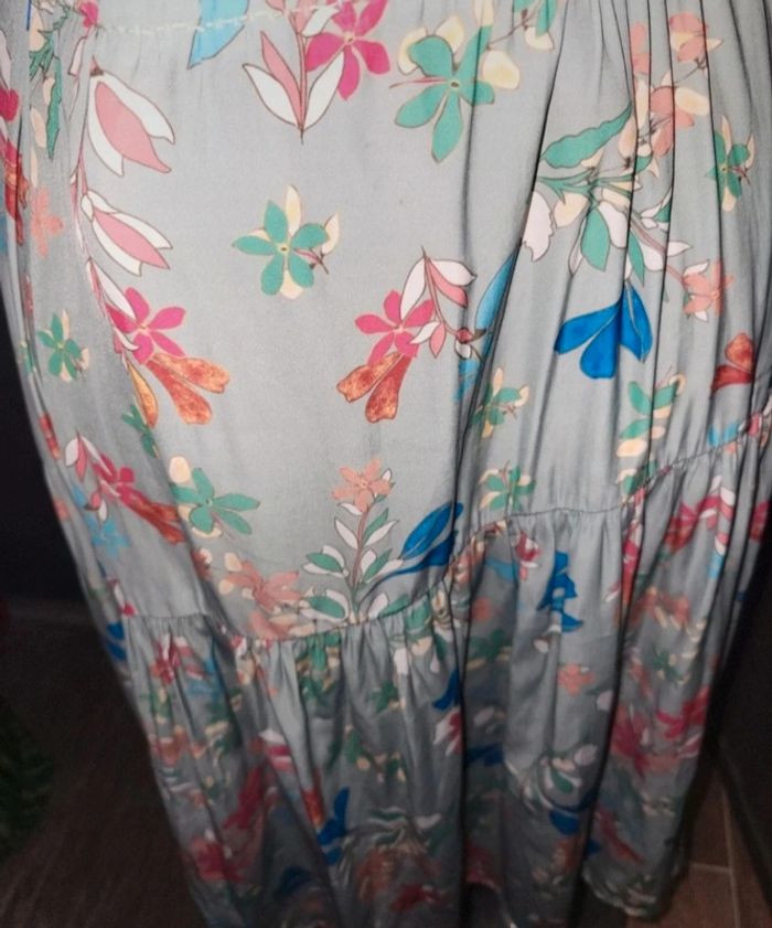 ✨ Jupe longue fluide avec une taille froncée, idéale pour allier confort et style. ✨ Motifs floraux multicolores (rose, rouge, bleu et blanc) sur un fond bleu clair, apportant une touche romantique et vive. ✨ Tissu léger et agréable à porter, parfait pour les journées ensoleillées ou une tenue printanière chic. ✨ Design intemporel qui s’adapte aussi bien à une tenue décontractée qu'à une occasion spéciale. ✨ taille 38/40. ✨ Très bon état #A2life_taille38 #A2life_taille40