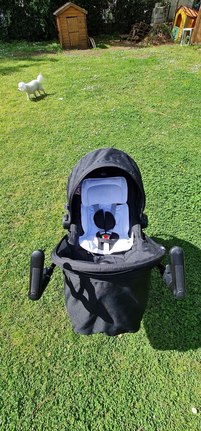 Poussette Sprint homologuée 0m+ (dès la naissance) jusqu'à 3 ans Nacelle/Landau/Lit-auto Sprint La nacelle landau Sprint kit auto possède un matelas amovible et inclinable. La poignée est rigide pour un transport facile et une fixation immédiate sur le châssis. La couverture 2 en 1 est transformable en couvre-jambe très pratique. Siège-auto Synthesis XT Plus Il dispose d'une capote pare-soleil, d'un kit confort et d'un coussin réducteur amovible. Utilisation : de la naissance à 15 mois Plus accessoire pluie et sac à langer