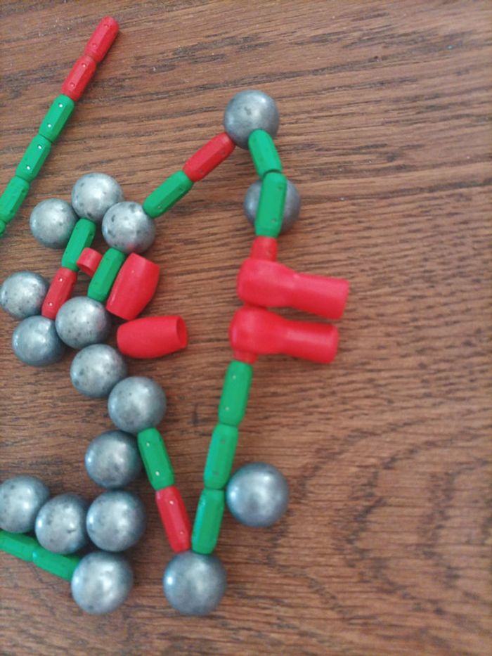 26 tiges de 1,5 cm (8 rouges et 18 vertes) 19 boules Quelques accessoires en plastique
