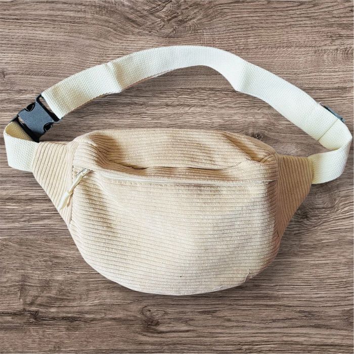 À vendre Sacoche banane femme beige en velours côtelé neuve! Taille : 31x14x8 cm N’hésitez pas pour plus d’informations