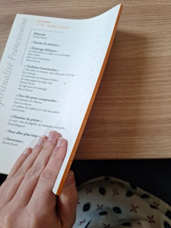 Éditorial – Pascale Bonef Paroles de témoins #zaceci28livrereligion Témoignages Temps de Dieu, temps des hommes ; Relecture des témoignages – Nicolas Morin Éclairage biblique Le temps chez le Qohélet – Nathalie Capó-Reverdin Lecture d’un texte biblique en fraternité Tradition franciscaine Naissance, vie et mort d’une clarisse – Marie-Claire Sachot « Une congrégation naît, vit et meurt » – Marie-Benoît Lucbernet Lecture d’un texte franciscain en fraternité Des clés pour comprendre La crise du temps L’immuable, le devenir, le passager – Brigitte Gobbé Chemins de prière « Maintenant et à l’heure de notre mort » – Sœur Marie-Emmanuel Pour aller plus loin Ouverture – François Delmas-Goyon « Naître, vivre, mourir », tout chemin de vie passe par des morts et des naissances, c’est ce que vous découvrirez au fil des articles de ce numéro. C’est aussi ce que vous pourrez relire dans votre vie, personnelle ou communautaire, grâce à la démarche de lecture de textes proposée, et aux questions pour aller plus loin.