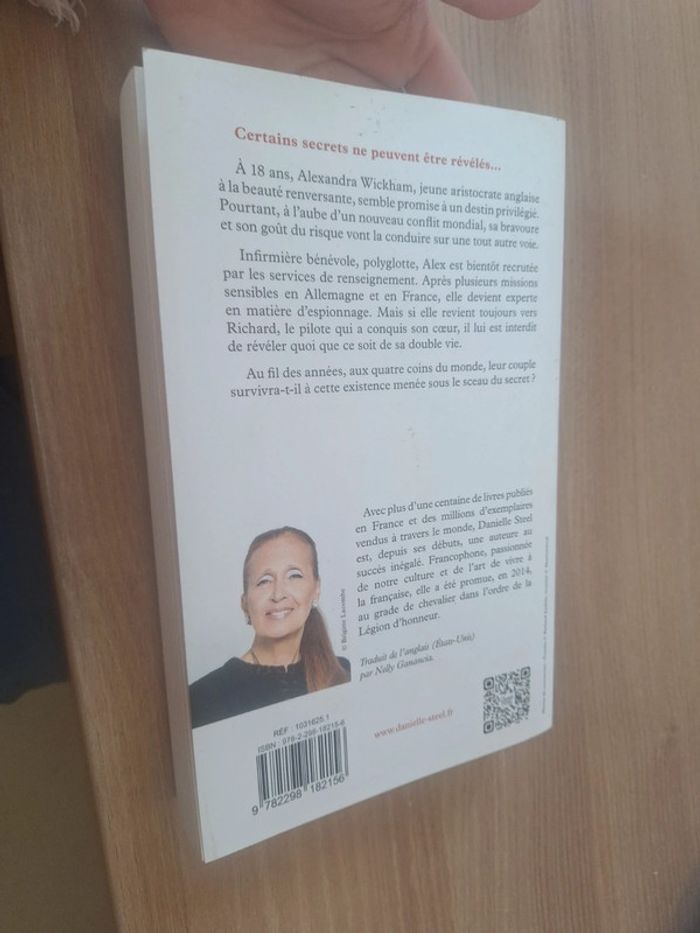 Auteur(s) : Steel Danielle Editeur : Presses De La Cité Langue : Français Parution : 03/11/2022 A 18 ans, Alexandra Wickham, jeune aristocrate anglaise à la beauté renversante, semble promise à un destin privilégié. Pourtant, à l'aube d'un nouveau conflit mondial, sa bravoure et son goût du risque vont la conduire sur une tout autre voie. Infirmière bénévole, polyglotte, Alex est bientôt recrutée par les services de renseignement. Après plusieurs missions sensibles en Allemagne et en France, elle devient experte en matière d'espionnage. Mais si elle revient toujours vers Richard, le pilote qui a conquis son coeur, il lui est interdit de révéler quoi que ce soit de sa double vie. Au fil des années, aux quatre coins du monde, leur couple survivra-t-il à cette existence menée sous le sceau du secret ?