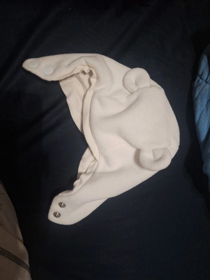Ours blanc crème panda oreille simple mixte garçon fille qui se ferme comme une cagoules avec des pression protège bien les oreilles #zaceci28naissance #zaceci28e1mois #zaceci28e3mois