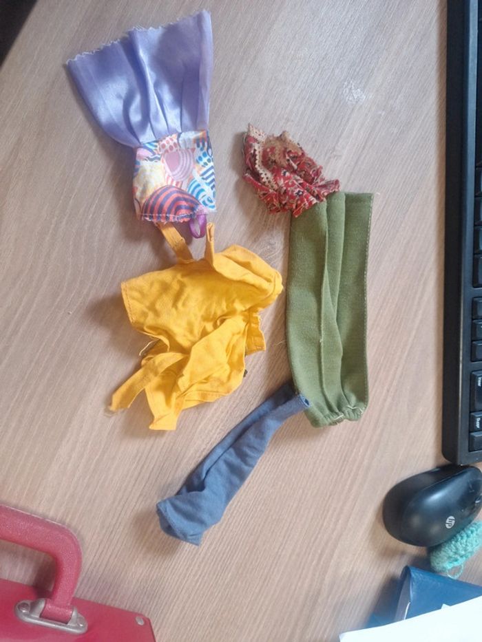 Veste jaune pantalon kaki et bléu... #zaceci28jouet Bonnet fait main Très bon. Bon etat et satisfaisant