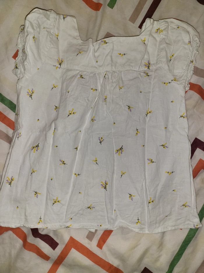 Haut type chemisier Manches courtes Blanc motif fleurs Kiabi eco conception 10 ans Bon état