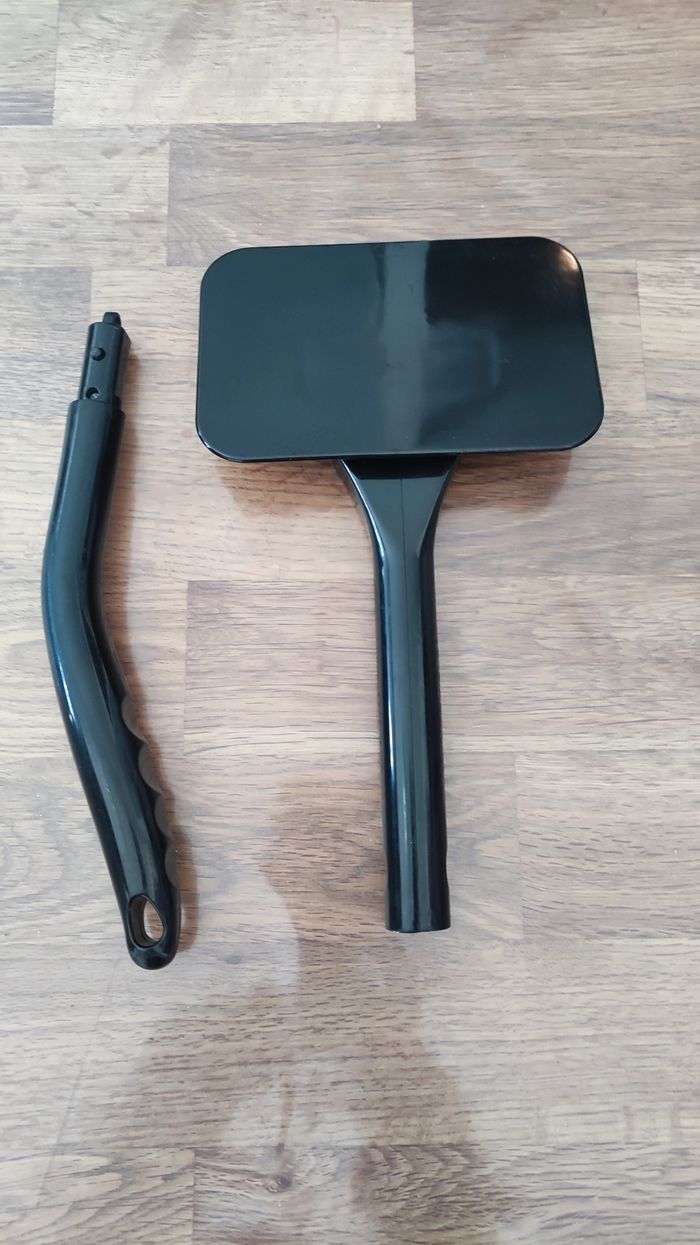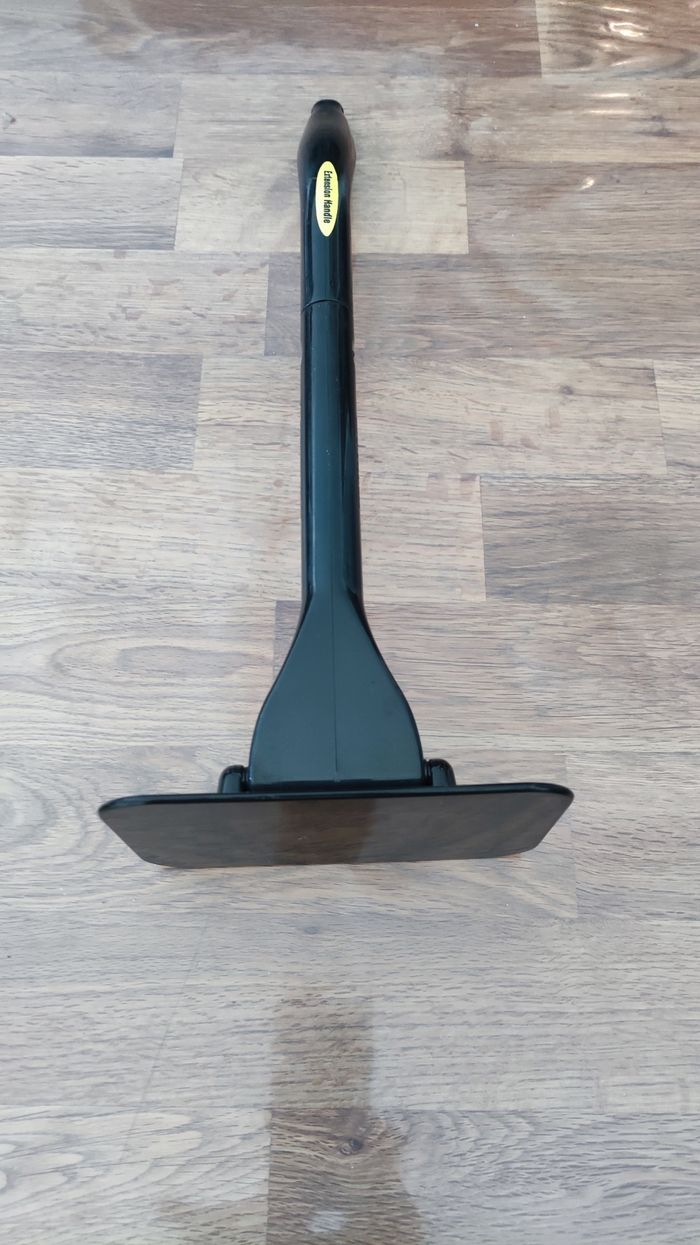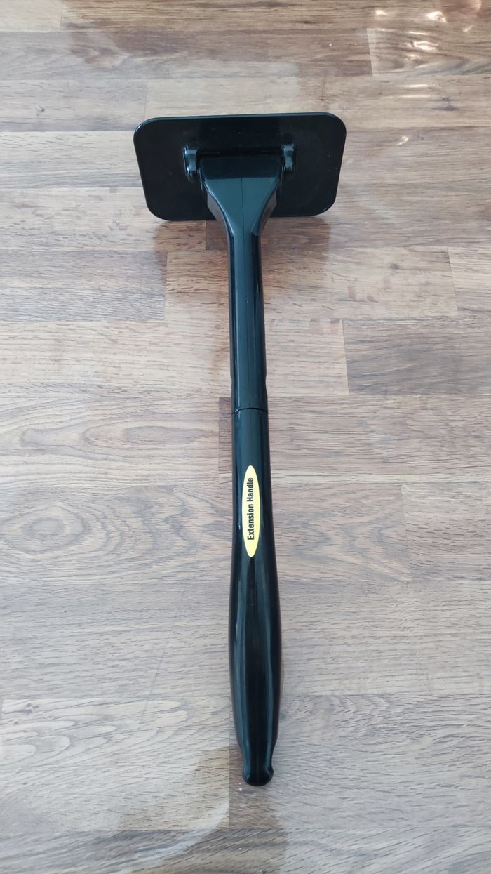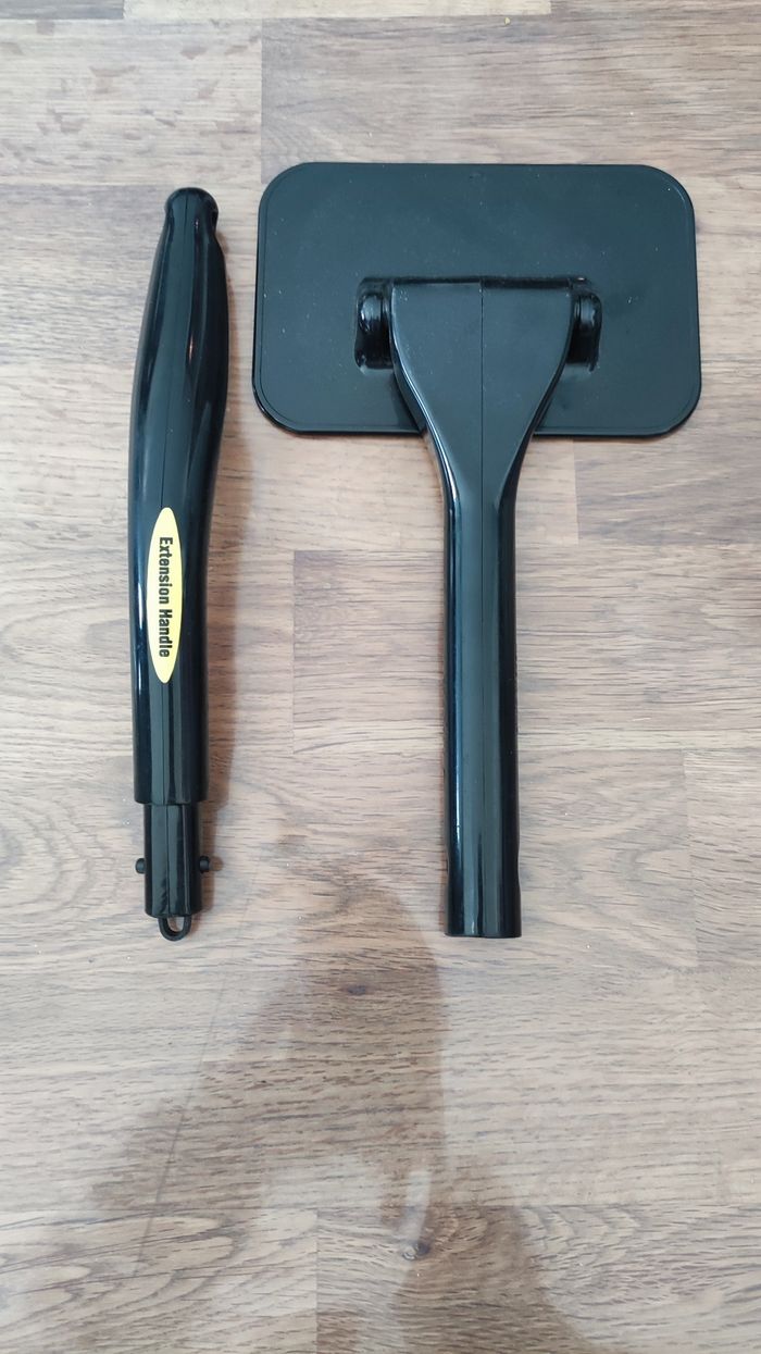 Sur la partie plate on y installe une micro fibre ( normalement c’est compris avec le manche) et cela sert pour nettoyer l’intérieur des parbrises des voitures. Pour éviter d’avoir à se plier sur les sièges avant. Comme neuf