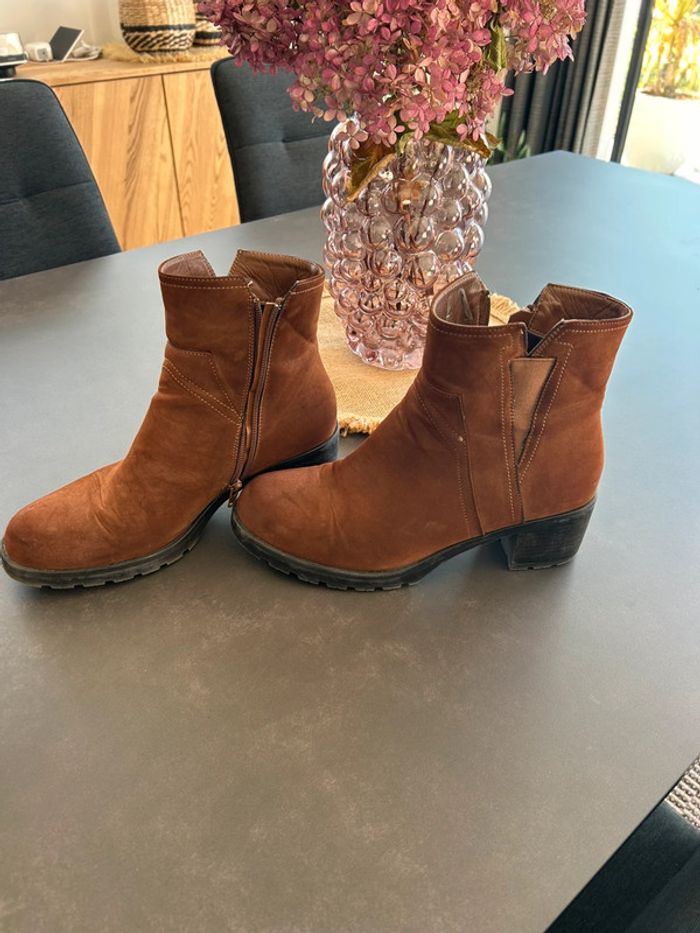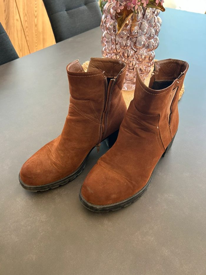 Bottines en daim marron Très confortables Légères traces d’usure