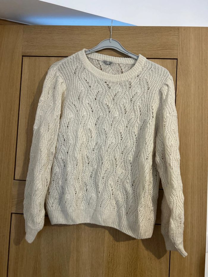 Très joli pull légèrement ajouré Couleur beige écru Taille 38 mais convient aussi à du 40 ou 42
