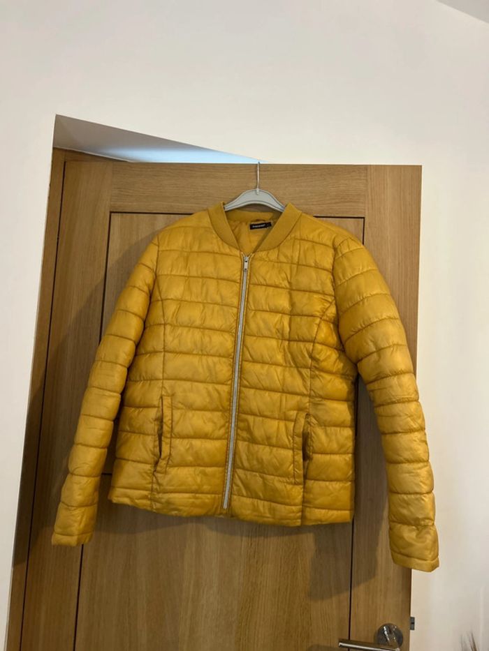 Doudoune moutarde Très confortable Poches latérales Petites bouloches au niveau du col mais rien de gênant