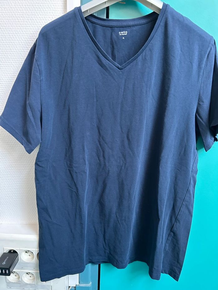 T-shirt manches courtes celio xl Trés bon état col v bleu marine
