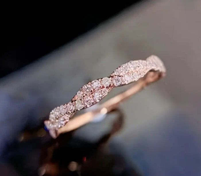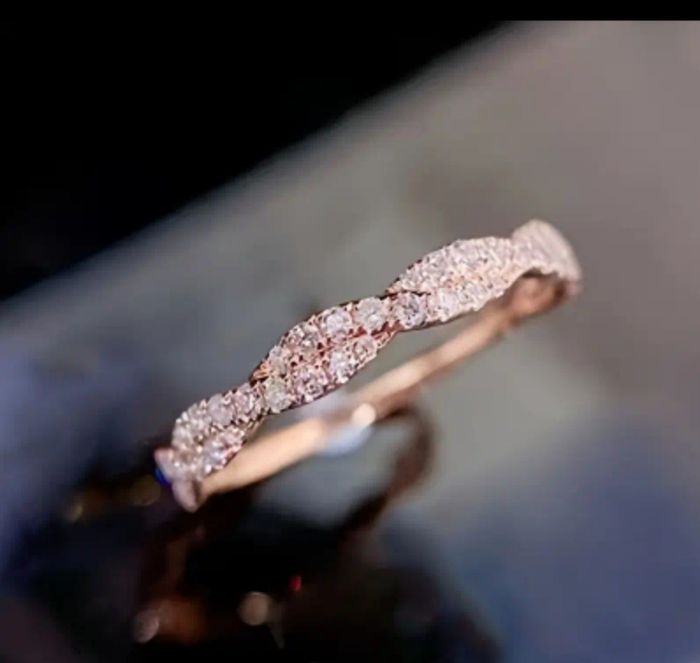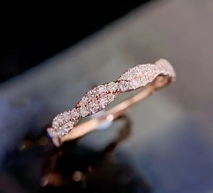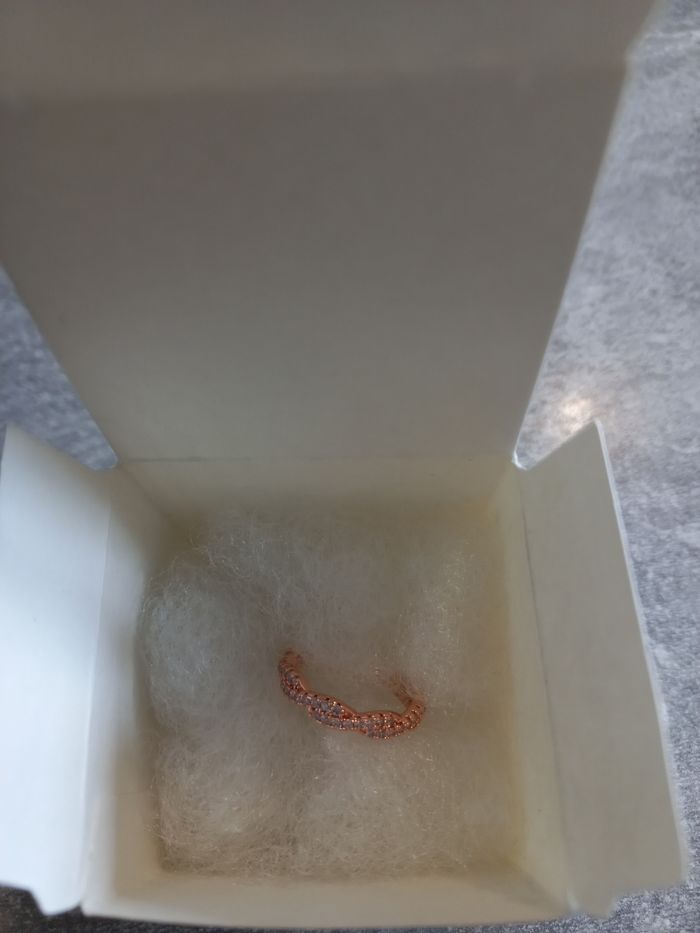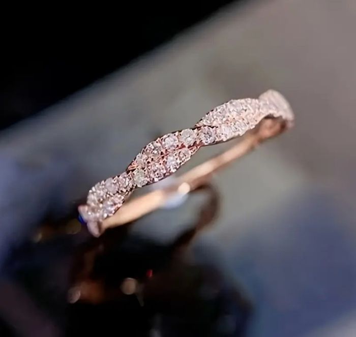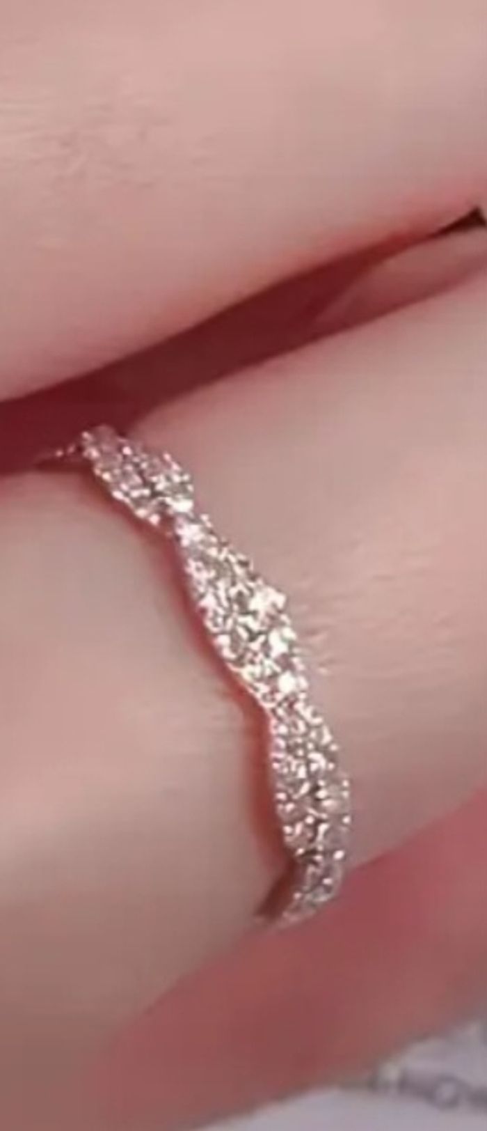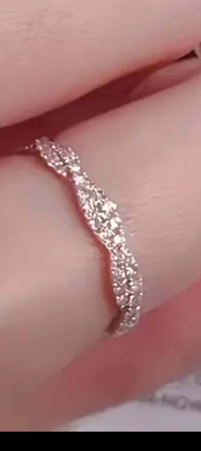 Très jolie bague en acier inoxydable rosé et cristaux brillants blancs.. taille USA 6..taille française 52. Diamètre 16,5mm..article neuf dans sa boîte cadeau