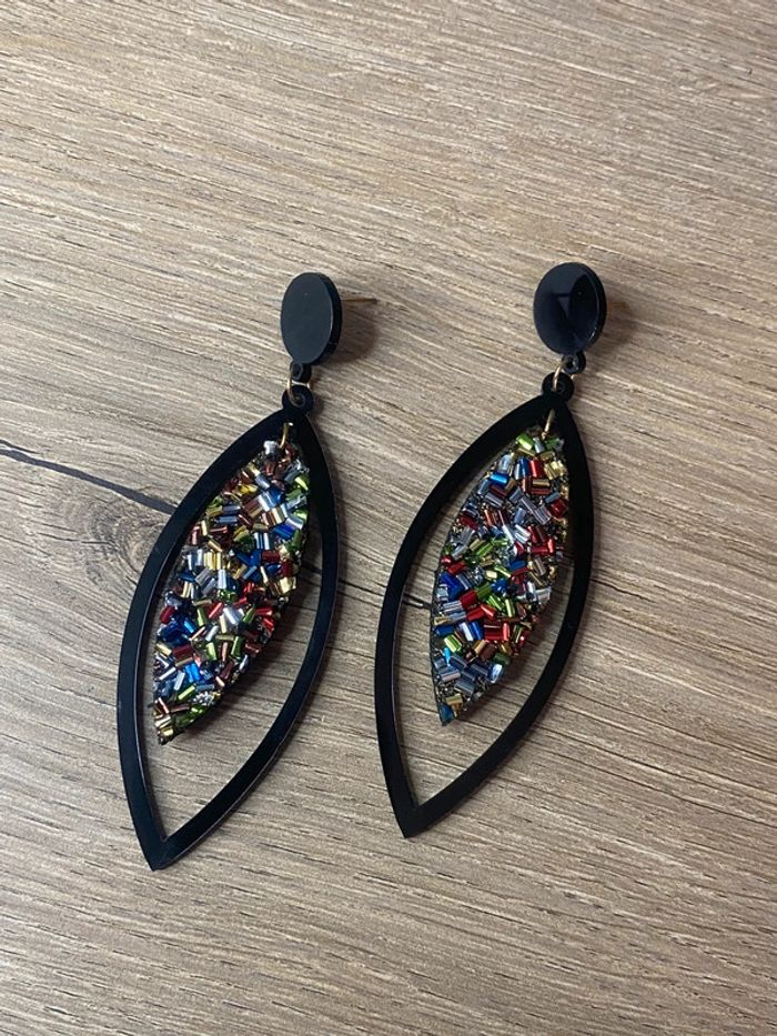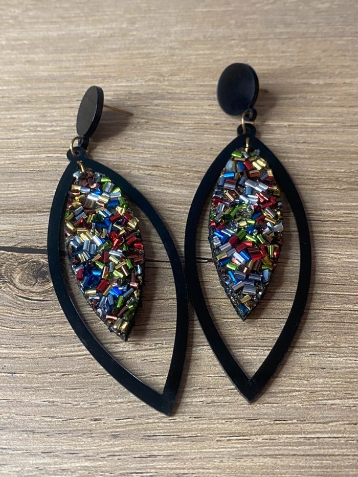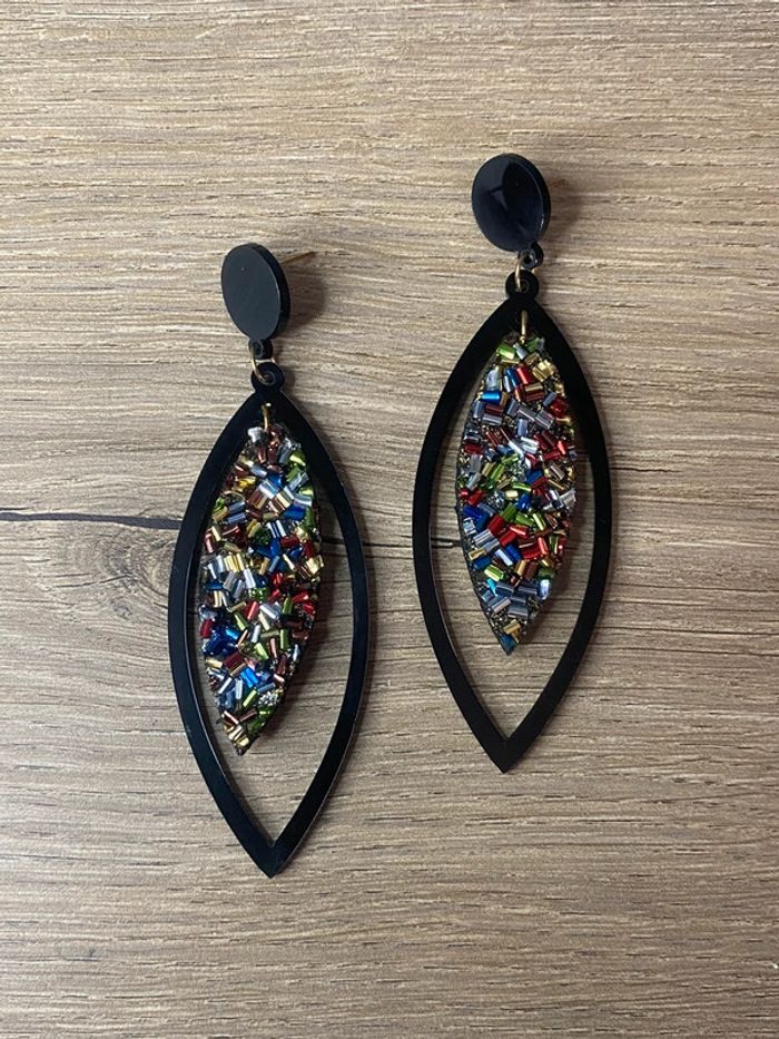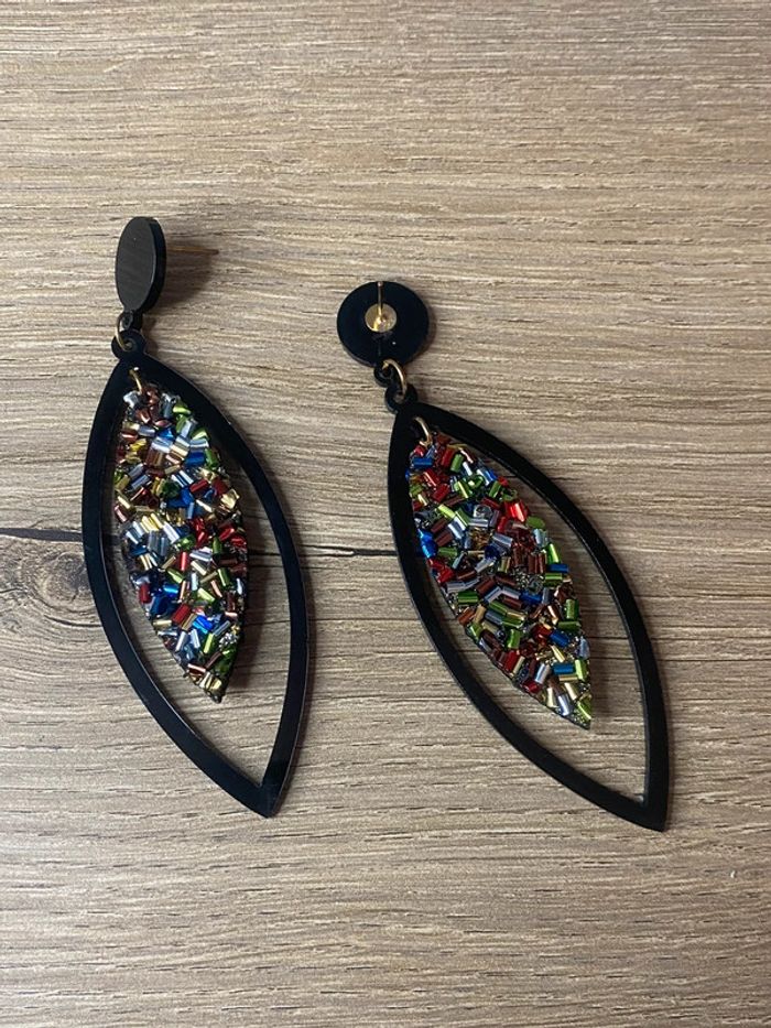Paire de boucles d’oreilles acrylique bohème chic Légère tendance et fun Clou acier inoxydable Vendu dans son petit sac organza Envoi rapide et soigné