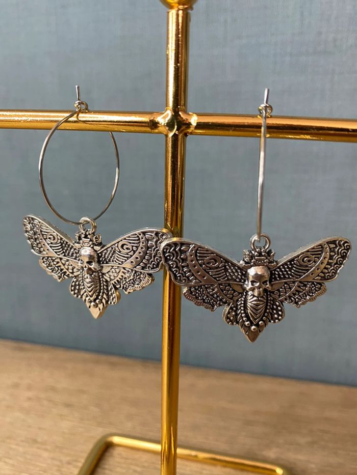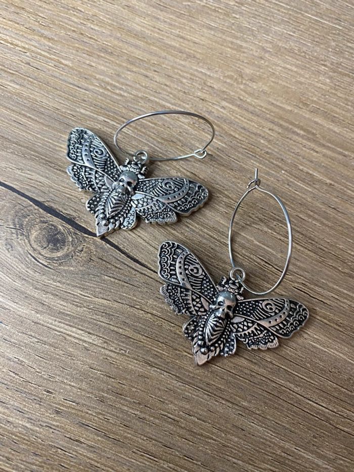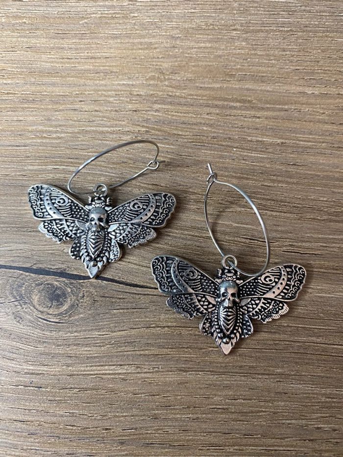 Boucles d oreilles créoles papillon de la mort rétro - photo numéro 1