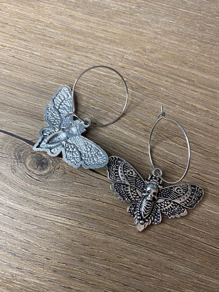 Boucles d oreilles créoles papillon de la mort rétro - photo numéro 6