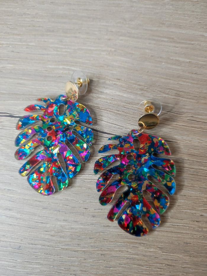Boucles d'oreilles acrylique feuille multicolore fun love