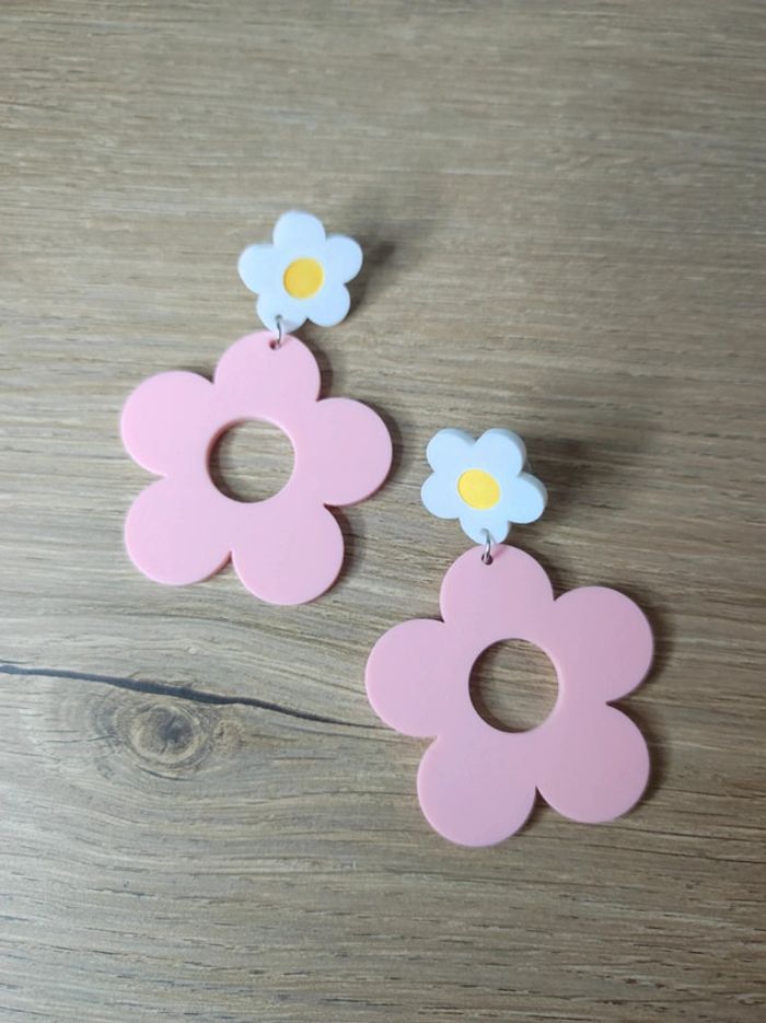 Boucles d'oreilles acrylique fleurs fun love - photo numéro 1
